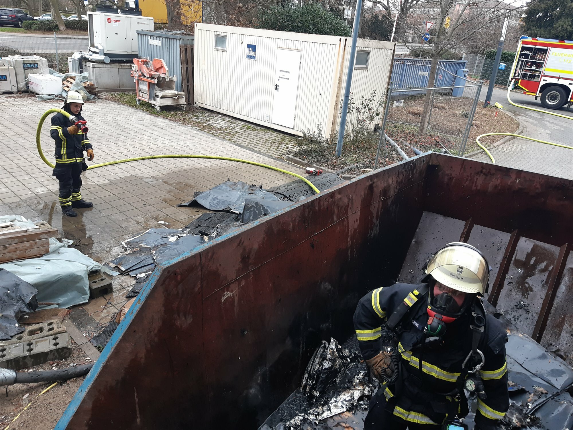 Beim Aufbau eines Standes für die Narrefahrt bemerkte ein Feuerwehrmann gegen 11 Uhr, dass ein Container mit Bauabfällen vor dem Krankenhaus St. Marienwörth in Brand geraten war. Er löschte das Feuer mittels Feuerlöscher und Gartenschlauch, bevor ein Löschtrupp seiner Kollegen unterstützte. Ein Feuerwehrmann unter Atemschutz stieg über eine Rettungsplattform in den Container und räumte das Brandgut ins Freie, wo es gründlich abgelöscht wurde. Mit einer Wärmebildkamera wurde nach weiteren Brandnestern gesucht. Der Einsatz war nach gut einer Stunde beendet.
