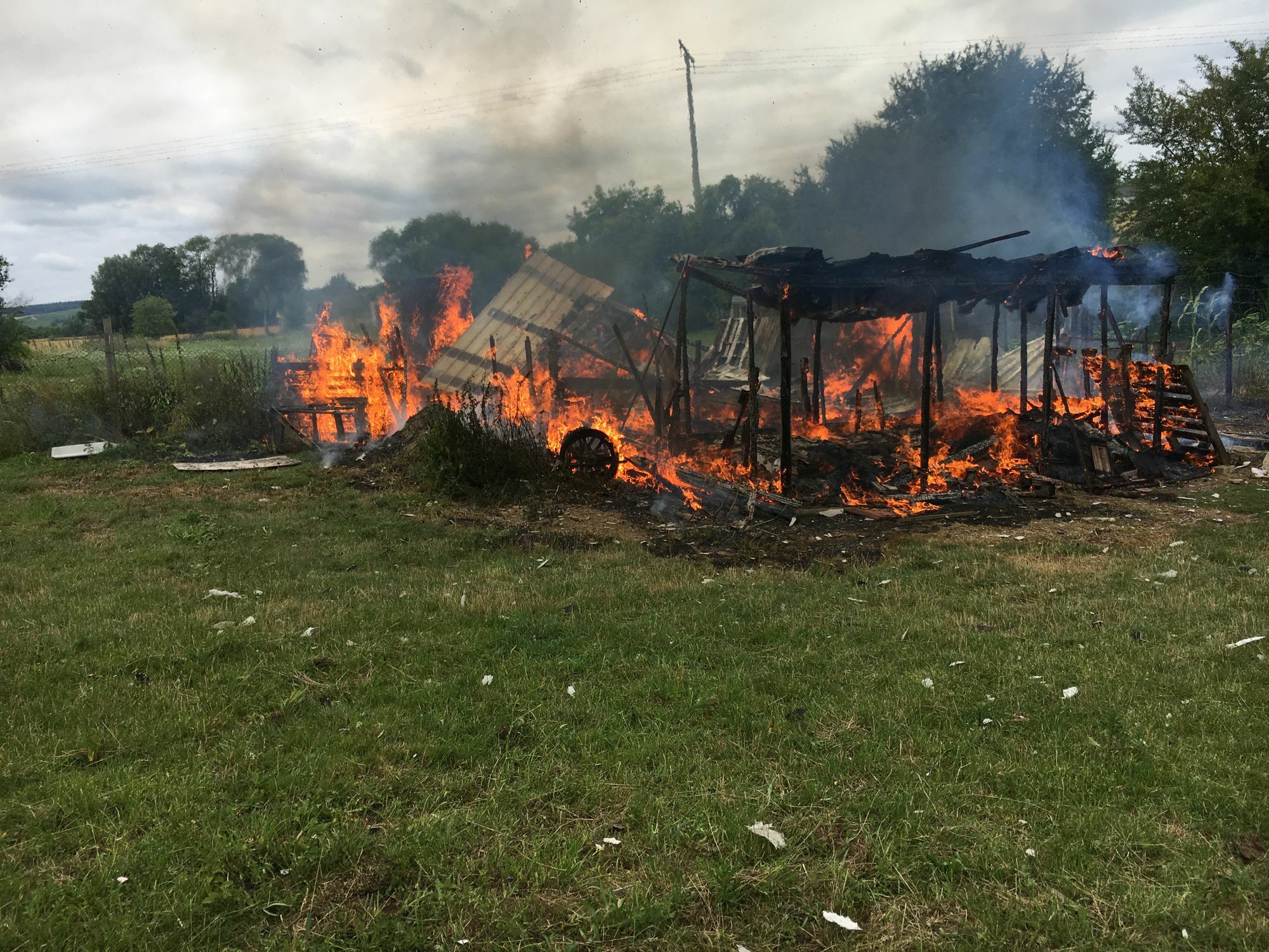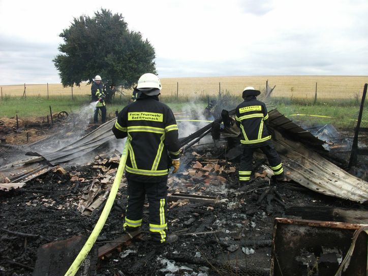 Ein Hühnerstall mit einer Grundfläche von etwa 120 m² stand in Vollbrand. Personen waren keine in Gefahr. Die Hühner konnten sich alle ins Freie flüchten. Ein Huhn verbrannte sich allerdings die Federn am Hinterteil, so die Feuerwehr. Mit zwei C-Rohren wurde von zwei Seiten ein Löschangriff vorgetragen. Insgesamt wurden drei Trupps unter schwerem Atemschutz zur Brandbekämpfung eingesetzt. Die Löschwasserversorgung wurde durch Pendelverkehr zweier Löschfahrzeuge sichergestellt. Knapp 20.000 Liter Wasser wurden für die Brandbekämpfung benötigt. Mit Äxten und Krappen wurde das Brandgut auseinandergezogen und gründlich abgelöscht. Mit einer Wärmebildkamera wurden letzte Glutnester aufgespürt. Nach etwa zwei Stunden war der Einsatz beendet und die Einsatzstelle konnte an den vor Ort befindlichen Eigentümer und den Pächter übergeben werden. Polizeibeamte nahmen die Ermittlungen zur Brandursache auf.