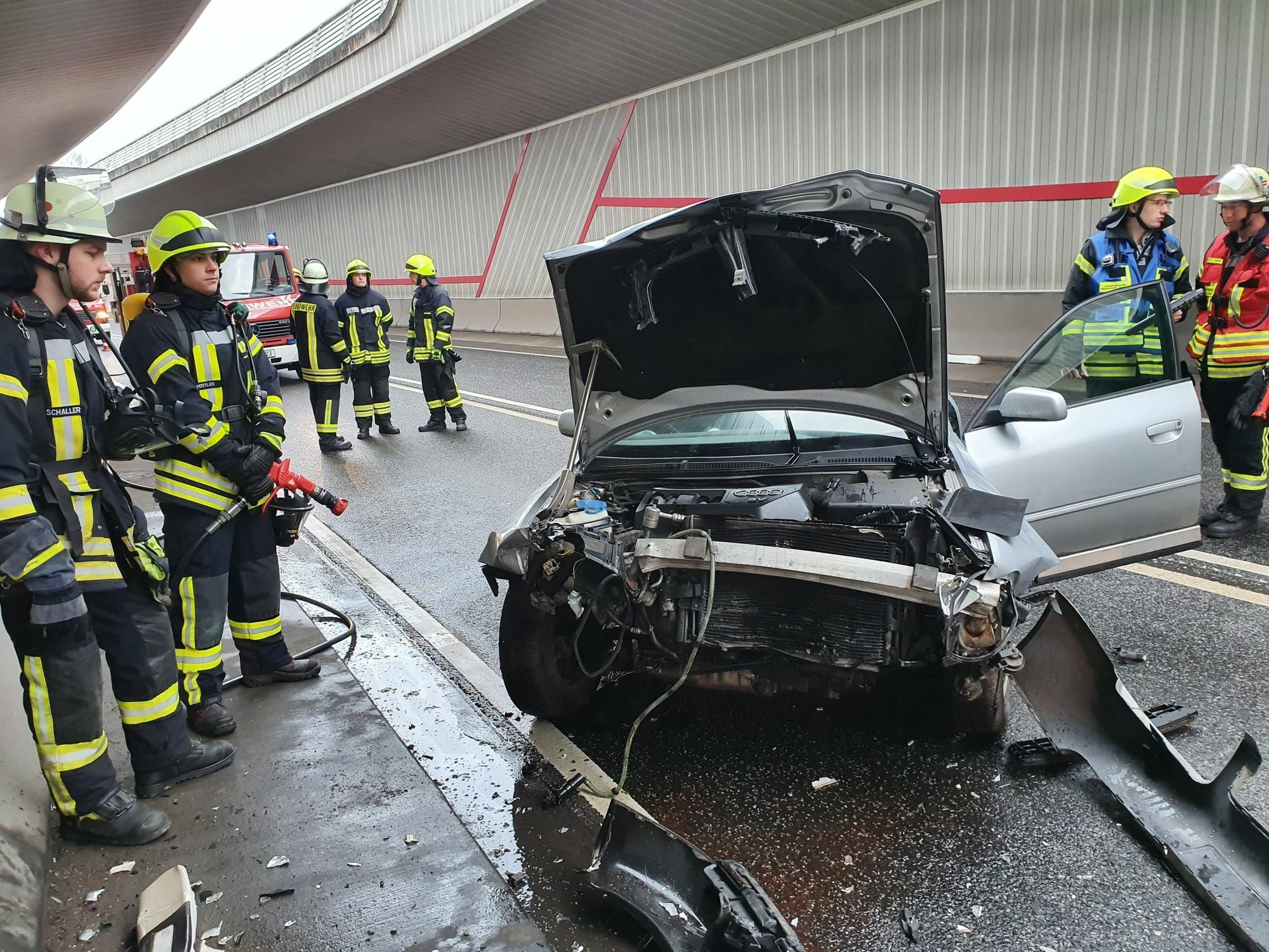 Im Tunnel zwischen Roxheim und der Bundesstraße 41/ Anschlussstelle Rüdesheim ist es am vergangenen Samstag zu einem schweren Verkehrsunfall gekommen. Der Fahrer kam auf einer Ölspur mit seinem Pkw ins Schleudern. Der Wagen prallte mehrfach gegen die Tunnelwand.