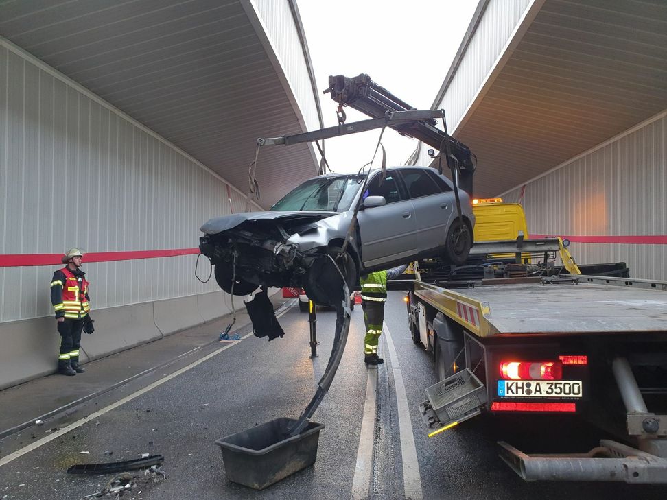 Pkw prallte mehrfach gegen die Tunnelwand