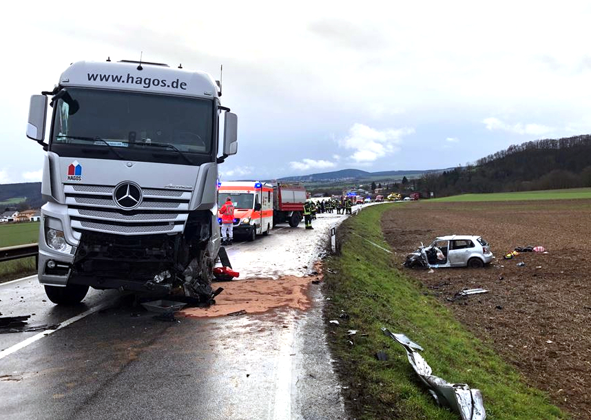 Nach Angaben von Unfallzeugen ist die 33-jährige Fahrerin des Pkw vermutlich aufgrund nicht angepasster Geschwindigkeit im Kurvenbereich auf der L 236 in direkter Nähe des Kreisverkehrs in Richtung Hargesheim, Roxheim und Wallhausen nach links von der Fahrbahn abgekommen und in den Gegenverkehr geraten. Hier sei diese mit dem ordnungsgemäß auf seiner Fahrspur fahrenden Lkw frontal zusammen gestoßen. Die 33-jährige Pkw-Fahrerin wurde mit ihrem Fahrzeug in einen Acker geschleufet und in ihrem Pkw eingeklemmt. Sie musste durch die Feuerwehr befreit werden. Die Fahrerin wurde durch den Unfall schwerstverletzt und musste mittels Rettungshubschrauber ins Krankenhaus geflogen werden. Der 53-jährige Lkw-Fahrer wurde leicht verletzt und erlitt einen Schock. Insgesamt entstand ein Sachschaden von ca. 30.000 Euro. Die L 236 musste in beide Richtung für mindestens zwei Stunden vollgesperrt werden. Nach Rücksprache mit der Staatsanwaltschaft Bad Kreuznach wird ein Gutachten zur Ermittluing der Unfallursache in Auftrag gegeben.