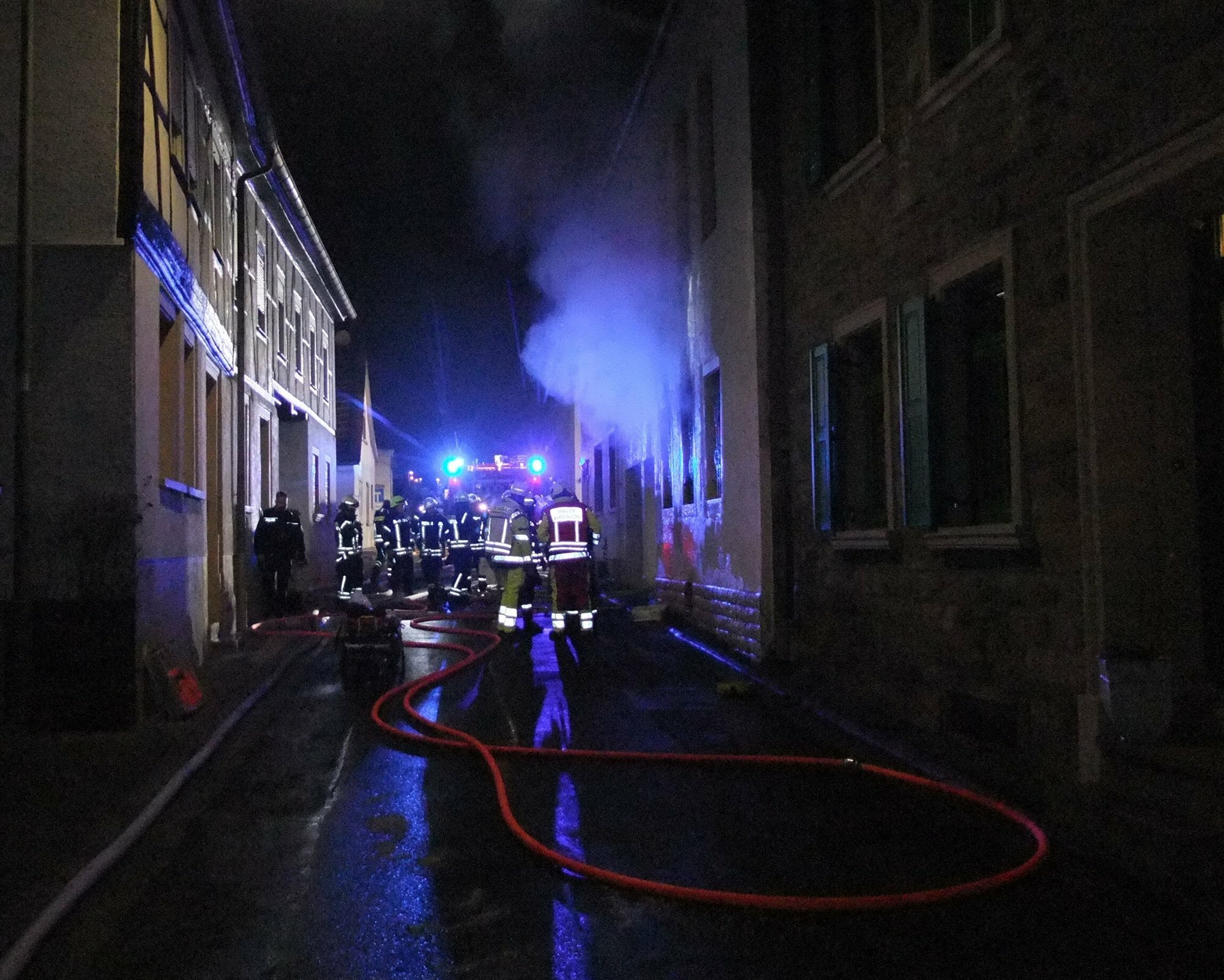 Der Brand brach gegen 0.30 Uhr aus bislang ungeklärter Ursache im Erdgeschoss des Hauses aus. Durch die Brandmelder wurden die insgesamt sechs Familienmitglieder geweckt und konnten das Haus - bis auf die Großmutter - eigenständig verlassen. Die 75-Jährige wurde durch ihren Sohn aus dem brennenden Haus gerettet und wurde durch Rettungskräfte und einen Notarzt erstversorgt. Mit einer schweren Rauchvergiftung wurde sie anschließend zur Behandlung in ein Mainzer Krankenhaus gebracht. Ihr Zustand war nach Angaben der Polizei lebensbedrohlich. Die übrigen Hausbewohner wurden vorsorglich zur Untersuchung in ein Bad Kreuznacher Krankenhaus gebracht. Zwei Katzen und der Hund der Familie kamen durch das Feuer ums Leben. Das Haus ist unbewohnbar, entstandene Sachschaden kann noch nicht beziffert werden. Die Kriminalpolizei hat die Ermittlungen zur Brandursache aufgenommen.