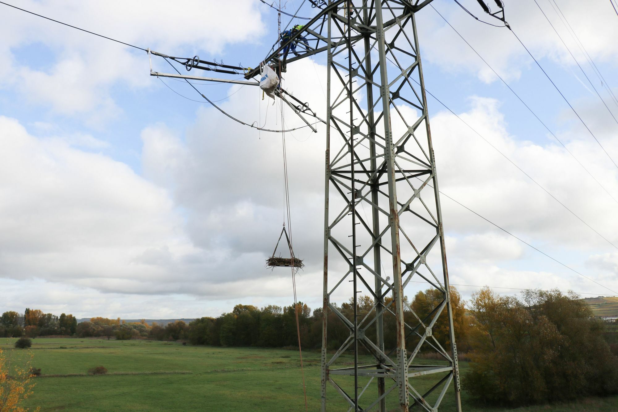 Als Michael Wahl, Leiter Hochspannungsfreileitungen bei Westnetz, davon erfuhr, dass sich die Störche samt Nachwuchs diesen luftigen Platz an der Bundesstraße 41 bei Bretzenheim ausgesucht hatten, war klar, dass hier gehandelt werden muss. Natürlich weiß man, dass die Storchennester nicht einfach entfernt werden dürfen – sie stehen unter strengem Schutz. „Wir stehen bei solchen Themen immer im Austausch mit den zuständigen Naturschutzbehörden“, erklärt Wahl und fügte hinzu: „Alle Sicherungsmaßnahmen erfolgen in Absprache und unter Aufsicht der Behörden. Damit sowohl die Vögel als auch die Stromleitungen sicher sind, haben wir uns dazu entschlossen, das Nest umzusiedeln.“ Nester zurückzuschneiden, damit diese nicht zu Gefahrenquellen werden können, ist eine sehr aufwendige Angelegenheit. Denn die unter dem Nest verlaufenden Freileitungen müssen dazu abgeschaltet werden. Auch muss für den Rückbau jedes einzelnen Nestes eine Genehmigung nach dem Bundesnaturschutzgesetz eingeholt werden. Doch Meister Adebar berührt dies alles nicht: Wenn er zu seinem Nest zurückkommt und feststellt, dass es kleiner geworden ist, setzt sich sein Instinkt durch und er beginnt wieder mit der Erweiterung. Es ist bekannt, dass der Storch sein Leben lang baut, was dazu führen kann, dass Nester im Laufe der Jahre ein Gewicht von mehreren Zentnern erreichen und nicht selten abstürzen. Um genau das zu verhindern wurde das etwa 1,2 Meter breite und zirka 50 Kilogramm schwere Storchennest am Dienstagmorgen durch drei erfahrene Freileitungsmonteure von Westnetz heruntergenommen. Dabei wurde das Netz auf ein Brett gezogen und am Mast mit einer Seilwinde heruntergelassen. Nachdem das Nest zur Sicherheit der Störche jetzt vom Strommast entfernt und gesichert wurde, werden Michael Kreuzer und Rainer Lanz-Wagner, von der Freien Wähler-Liste (FWL) Bretzenheim, im Frühjahr für einen neuen, geeigneten Alternativstandort auf einem Baumtorso in der Nähe der Bretzenheimer Wohnbebauung sorgen. Jetzt gilt es abzuwarten, ob die neue Nisthilfe im kommenden Jahr von Störchen angenommen wird.