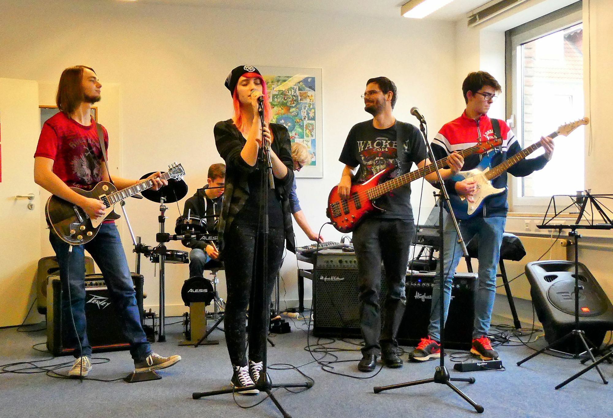 Gleich zehn Bands stehen auf der Bühne. Für die Bands „Lived a Day“ und „Prinzessin Lea“ ist es der erste Auftritt. Entsprechend groß ist die Nervosität. „Für junge Musiker ist es sehr wichtig Live-Erfahrungen zu sammeln. Wer früh auf der Bühne steht lernt mit der Aufregung umzugehen und sie in positive Energie zu wandeln.“ so Axel Gießmann, Leiter der Rock-Pop-Werkstatt.Außerdem sind mit dabei: „Scull Rose”, “J!mmy for Pre$ident”, “Six Brothers”, “Desaster”, “The Fantastic Beats”, “Schmitt's Katzen” sowie die beiden Erwachsenenbands “Rock Rabble” und “Partyschreck”. Weitere Info unter www.musikschule-mittlere-nahe.de.