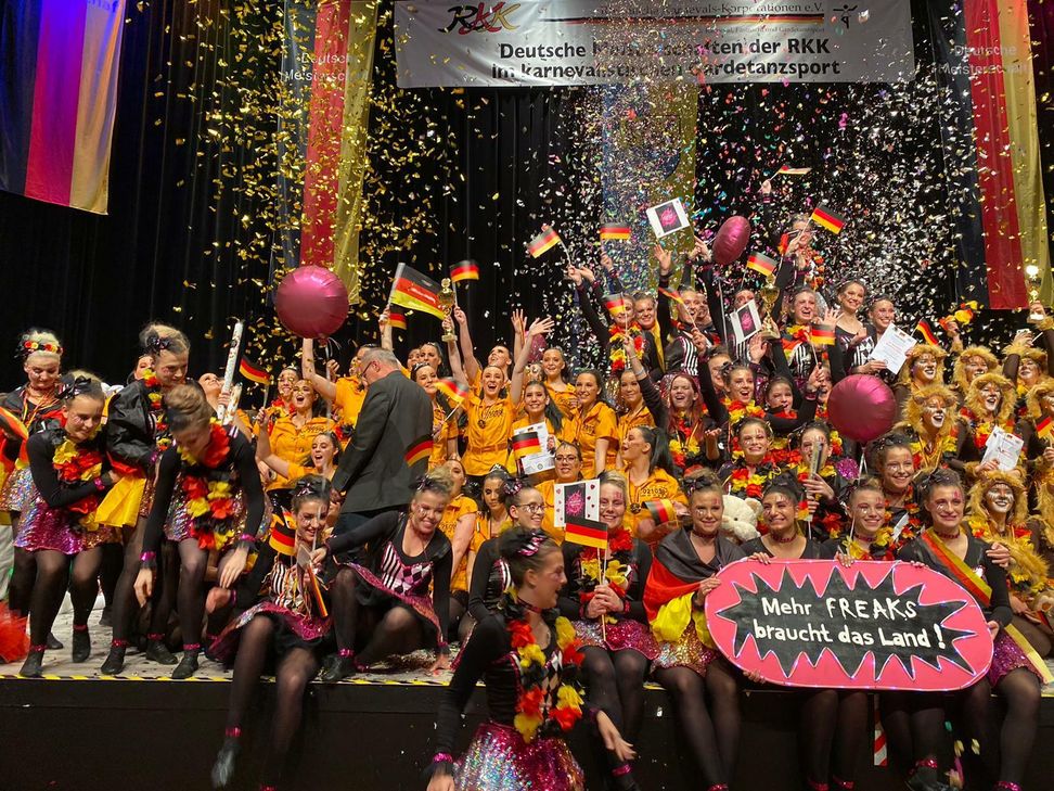 Die Deutsche Meisterschaft erstreckt sich über zwei Tage, an denen die Tänzerinnen aller Altersklassen von rund 70 Fans aus dem eigenen Verein begleitet wurden, die im Saal für Stimmung sorgten und die Gruppen anfeuerten. Die Kindergarde des TSV Rhein-Nahe eröffnete den Turniertag und trat als erste Gruppe des Vereins an den Start. Sie verpassten nur knapp den Treppchenplatz und ertanzte sich einen guten vierten Platz. In der gleichen Altersklasse tanzten sich die Tanzmäuse mit ihrem Tanz „Im Land der Träume“ auf Platz drei und damit landeten die stolzen Mädels im Alter zwischen 6 und 11 Jahren auf dem Treppchen. In der Altersklasse der Junioren erreichte die Garde einen hervorragenden vierten Platz unter starker Konkurrenz von weiteren zwölf Wettbewerbern. Die Seniorengarde erreichte ebenfalls unter starker Konkurrenz den achten Platz. Als amtierende Saarland-, Hessen- und Nordrhein-Westfalen-Meisterin ging Sofia Kaska in der Disziplin Solo Gardetanz an den Start. Unter neuer Leitung von Jan Hoffmann, schaffte sie es als erstes Mariechen des Vereins, fast alle Landesmeistertitel zu holen und am Ende des Tages sogar als Deutsche Meisterin 2019 von der Bühne zu gehen. Ein perfekt ausgeführter Tanz wurde von der Jury, zweimal mit der Traumnote 10,0 und einer Gesamtpunktzahl von 48,6 von 50 möglichen Punkten belohnt und war somit der krönende Abschluss ihrer erfolgreichen Turniersaison. Auch Olivia Nguyen, schaffte mit ihrem Tanz einen erstklassigen 8. Platz zu belegen und unter die Top 10 der besten Tanzmariechen aus Deutschland zu kommen. Die Showtanzgruppe Five Elements, welche als amtierender Deutscher Meister, Saarlandmeister und Hessenmeister mit dem Thema “Die Wüste lebt” an den Start ging, darf sich nun Vizemeister nennen. Ein außerordentlich schöner Tanz, der leider aufgrund 2 kleiner Wackler dieses Jahr nicht ganz für die Titelverteidigung gereicht, hat. Nach dem Titel Deutscher Meister im Jahr 2016 und im vergangen Jahr 2018 darf sich auch die Showtanzgruppe InTeam, wie schon 2017 wieder Vizemeister nennen.