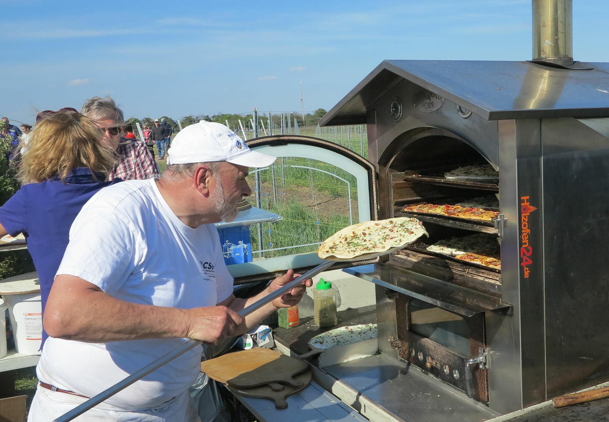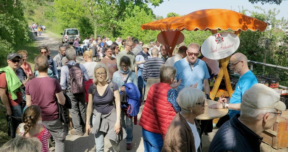 Das Weingut Jürgen Dhom hatte den ersten Standplatz zu Füßen der Kauzenburg übernommen. Zweiter in der Runde war das Team von Anton Finkenauer. Paul Christan Anheuser und seine Mutter hatten ebenfalls alle Hände voll zu tun. Das Weingut Gemünden stand auf halbem Weg zwischen Teetempel und Quellenhof. Auf dem Plateau wartete schon das Weingut Philipp Dhom. Eng umlagert von Weinfreunden war auch der Stand des Staatsweingutes Bad Kreuznach. Das Weingut Carl Finkenauer musste sich mehrfach frische Gläser bringen lassen. Auch die Kauzenburg war mit einem Weinausschank dabei. Metzger Stefan Balzer rotierte fast in seiner Grillstation, um den Hunger der wartenden Wanderer zu stillen. Kaum anders bei Bäckermeister Alfred Wenz auf dem Kauzenberg: Sein Holzofen spuckte fast 500 Flammkuchen und Pizzen aus. Text & Fotos: Norbert Krupp