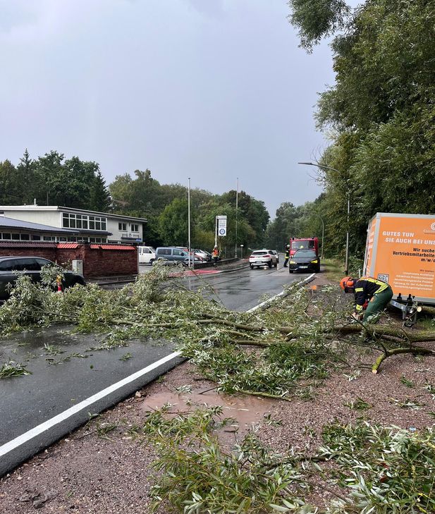 Doch die Ruhe währte nicht lange: Am späten Nachmittag zog ein starkes Gewitter über das Gebiet. Gegen 17.30 Uhr fiel in der Hargesheimer Lindenstraße eine Weide auf die Fahrbahn. Die Feuerwehr Hargesheim-Roxheim rückte mit Motorsägen an und räumte die Straße. Erschwert wurde der Einsatz durch unverständliches Verhalten einiger Autofahrer, die trotz klarer Absicherung mit unverminderter Geschwindigkeit an den Einsatzkräften vorbeifuhren. Ein Fahrer reagierte sogar aggressiv auf die Maßnahmen.