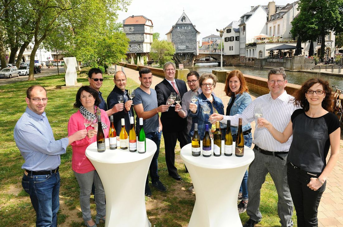 Zehn Weingüter der Stadt schenken am Freitag und Samstag, 27. und 28. Mai, ihre besten Weine aus. Dabei steht das Weinerlebnis im Mittelpunkt und neben dem edlen Rebensaft werden nur Sekt und Secco, Traubensaft und Wasser ausgeschenkt. Besonders in den Abendstunden begeistert die pittoreske Atmosphäre die Besucher des Weinfestes. Auch Musik bereichert das weinselige Treiben. „Two and a box“ wird jeweils für 30 Minuten Musik an unterschiedlichen Stellen des Festes bieten: deutsche und englische Titel von den 60er Jahren bis zu aktuellen Hits. Ob der musikalische Tausendsassa und Vollblutgitarrist Songs von Udo Jürgens, den Beatles, Jimmy Hendrix oder Peter Gabriel mal instrumental, mal vokal interpretiert, eines ist immer garantiert: gute Laune und mindestens ein Zucken in den Beinen. Die Weinstände sind von 18 bis 24 Uhr geöffnet. Der Eintritt zum Weinfestival am Mühlenteich ist wie immer frei. Auf dem Foto von links nach rechts die teilnehmenden Weingüter- in der Mitte Bürgermeister Wolfgang Heinrich: Sebastian Korrell (Weingut am Katharinenhof), Ellen Finkenauer (Weingut Anton Finkenauer), Hans Joachim Gattung (Weingut H.J. Gatttung), Rainer Gies (Staatsweingut), Daniel Gemünden (Weingut Gemünden), Matthias Schabbler (Weingut Steffen Meinhard), Ursula Schäfer (Weingut Schäfer-Montigny), Johanna Lorenz (Weingut Lorenz und Söhne), Paul Christian Anheuser (Weingut Paul Anheuser), Angelika Mayer (Weinhof Mayer).