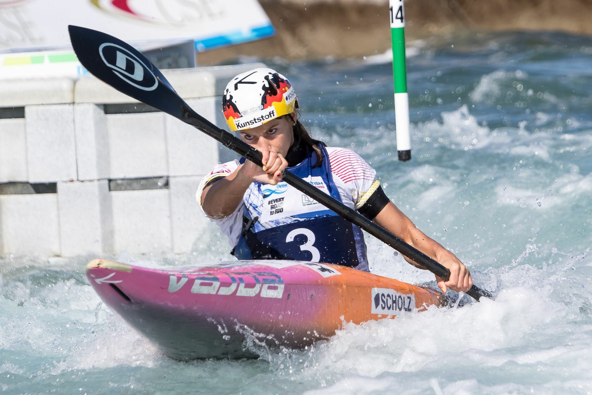 Nach dem EM-Titel in 2014 und EM-Silber in diesem Jahr nun auch WM-Silber für Ricarda Funk. Bei den Kanu-Slalom Weltmeisterschaften in Londons Lee Valley sicherte sich die Kajakfahrerin des KSV Bad Kreuznach die Silbermedaille. Dabei konnte die letztjährige Europameisterin keinen perfekten Lauf herunterbringen: Im mittleren Abschnitt geriet die 23 jährige nach einem Fahrfehler vom Kurs ab, kämpfte sich aber Schlag auf Schlag wieder heran und belegte abschließend Rang zwei hinter Katerina Kudejova aus der Tschechischen Republik. Hinter Ricarda Funk paddelte Teamkameradin Melanie Pfeifer (Augsburg) zu Bronze. “Vizeweltmeisterin!”, freute sich Ricarda Funk, “Das war kein perfekter Lauf, in der Mitte bin ich etwas von der Linie abgewichen und habe mir dadurch ein paar Probleme eingehandelt. Danach gab es keine Wahl mehr, ich musste voll auf Risiko fahren.“