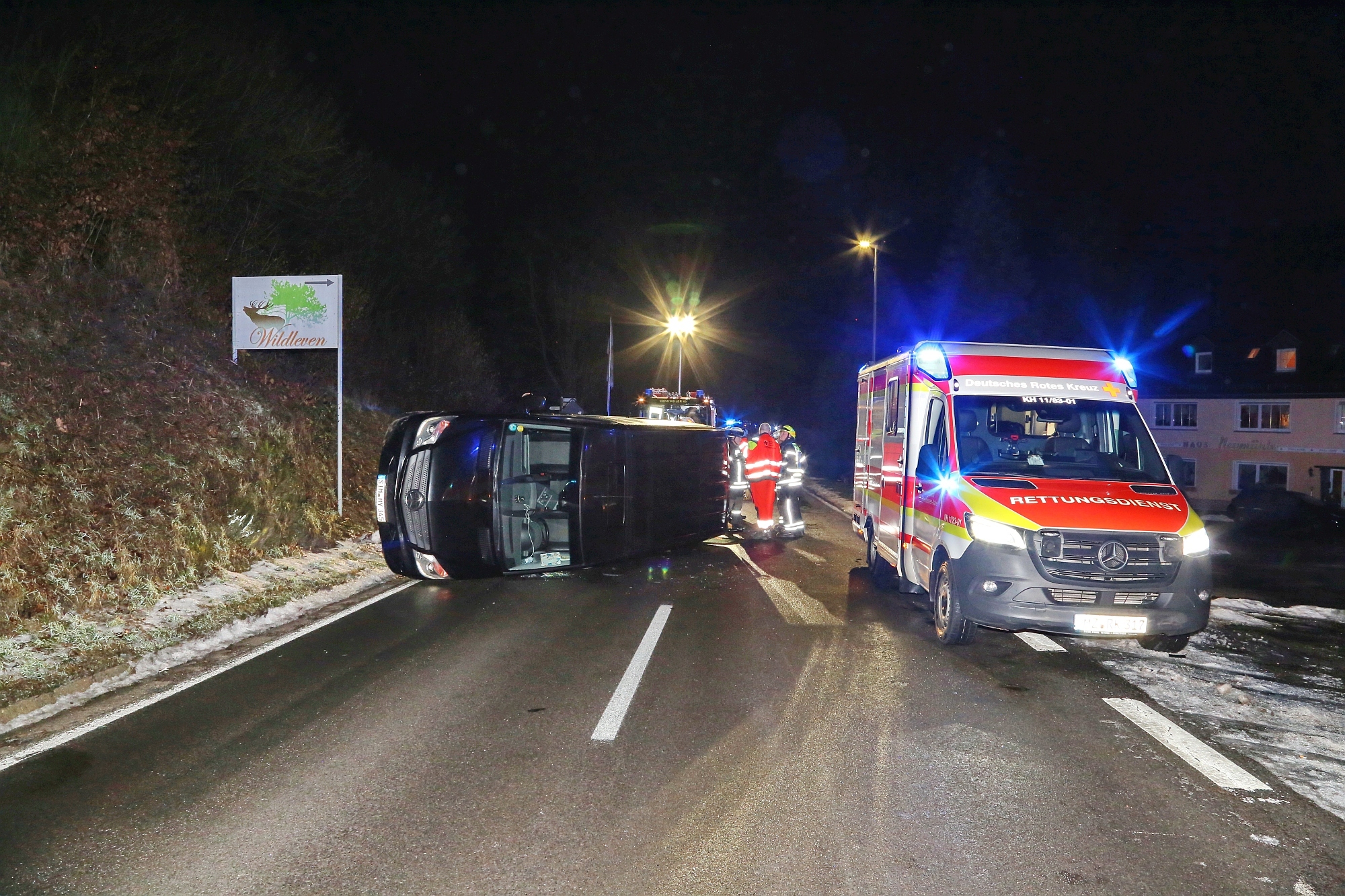 Bei Rudolfshaus verunglückte ein Transporter auf spiegelglatter Fahrbahn.