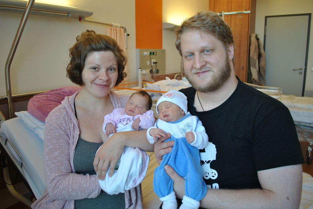Foto: Alisa Potratz (links), die selbst als Hebamme in St. Marienwörth arbeitet, und Daniel Kaufhold (r.) mit ihren Kindern Victoria und Elrik Josef.