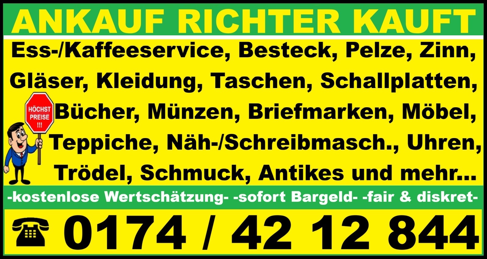 !! Ankauf - Richter kauft zu Höchstpreisen an. Bitte alles anbieten. -Sofort Bargeld- -seriös & fair-. Freundliche Grüße Hr. Richter Tel. 01 74 / 42 12 844