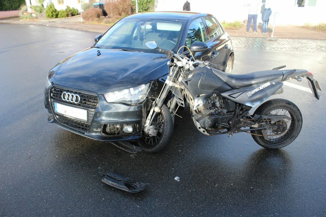 Die 26-Jährige wollte nach links in die Lindenallee einbiegen, worauf der 16-Jährige, auf der Vorfahrtsstraße, in die linke Seite des Audis gefahren war. Das Kraftrad war nicht mehr fahrbereit und musste abgeschleppt werden.