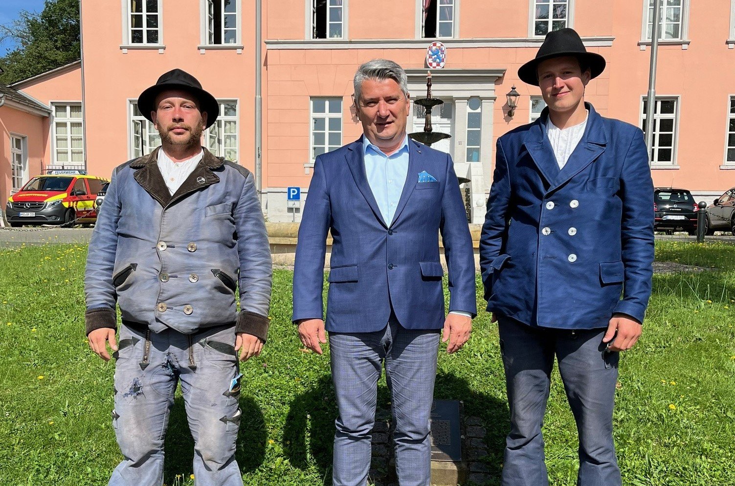 . Die beiden Handwerksgesellen Conrad Gillhaußen und Valentin Schömmel befinden sich derzeit auf der Walz. Am Sitz der Kreisverwaltung holten sie sich - wie es die Tradition will - den Stempel und die Unterschrift des Landrats für ihre jeweiligen Wanderbücher ab. Mindestens drei Jahre und einen Tag, so ist es vorgeschrieben, müssen die jungen Männer unterwegs sein. Weitere Vorgaben sind, dass sie ledig, kinderlos und schuldenfrei sind. Zudem sind sie dazu angehalten, so minimalistisch wie möglich zu leben und zu arbeiten. "Wir dürfen zum Beispiel kein Geld für unsere Fortbewegung und für unsere Unterkunft ausgeben. Es ist also schon eine beschwerliche Zeit, die man mögen muss", sagt Conrad Gillhausen. Der 31-jährige Elektrikergeselle kommt aus Singen am Hohentwiel, also aus der Nähe des Bodensees, und ist schon längere Zeit auf der Walz, die er 2025 beenden wird. Anders sieht es bei Valentin Schömmel aus. Der Fahrradmechanikergeselle aus Freiburg im Breisgau hat erst vor acht Tagen mit seiner Wanderschaft begonnen. Kennengelernt hat er Gillhaußen bei einem Treffen, bei dem Wandergesellen in größere Zahl zusammenkommen. Nun begleitet der 25-jährige Schömmel seinen Handwerkskollegen. Die Nacht zuvor hatten Schömmel und Gillhaußen in einem Unterstand bei Türkismühle verbracht, bevor sie per Anhalter nach Birkenfeld weiterreisten. Dort entboten die beiden, die durch ihre traditionelle Kluft mit schwarzem Hut, Jackett, weiter Schlaghose und Reisebündel gut erkennbar sind, dem Landrat die seit Jahrhunderten überlieferten Handwerkergrüße. Kowalski revanchierte sich mit einer Bargeldspende, die die beiden Gesellen für ihre Wegzehrung nutzen können. Sie wollten nun anschließend Richtung Morbach und Mosel weiterziehen, berichteten Gillhaußen und Schömmel beim kurzen Plausch im Büro des Landrats.