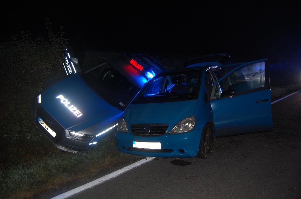 Der Streife der Polizeiinspektion Lauterecken war um 01.35 Uhr ein PKW mit einem ausländischen Kennzeichen aufgefallen. Beim Erkennen des Polizeifahrzeuges beschleunigte der Mercedesfahrer seinen Wagen und flüchtete zunächst von Odenbach in Richtung Meisenheim, danach in Richtung Breitenheim. Hier ging es weiter über die Straße "Auf der Stay" und von dort über einen Feldweg wieder in Richtung Meisenheim. Über das Gelände eines Bauernhofes fuhr der Verfolgte zu einer Wiese in Richtung L 182. Dort rutschten schließlich beide PKW den Hang hinunter zur L 182, wo die Polizeibeamten den im liegen gebliebenen Fahrzeug sitzenden Mann festnahmen. Der 33-jährige Mann gab an, den Wagen gestohlen zu haben. Auch die nicht zum Fahrzeug gehörenden Kennzeichen hätte er "gefunden". Weiterhin fanden sich in dem nicht zugelassenen Mercedes Utensilien, wie sie beim Dieseldiebstahl eingesetzt werden. Nach der Feststellung seiner Personalien und einer Blutprobenentnahme wurde der 33-Jährige entlassen. Der Mercedes wurde sichergestellt.
