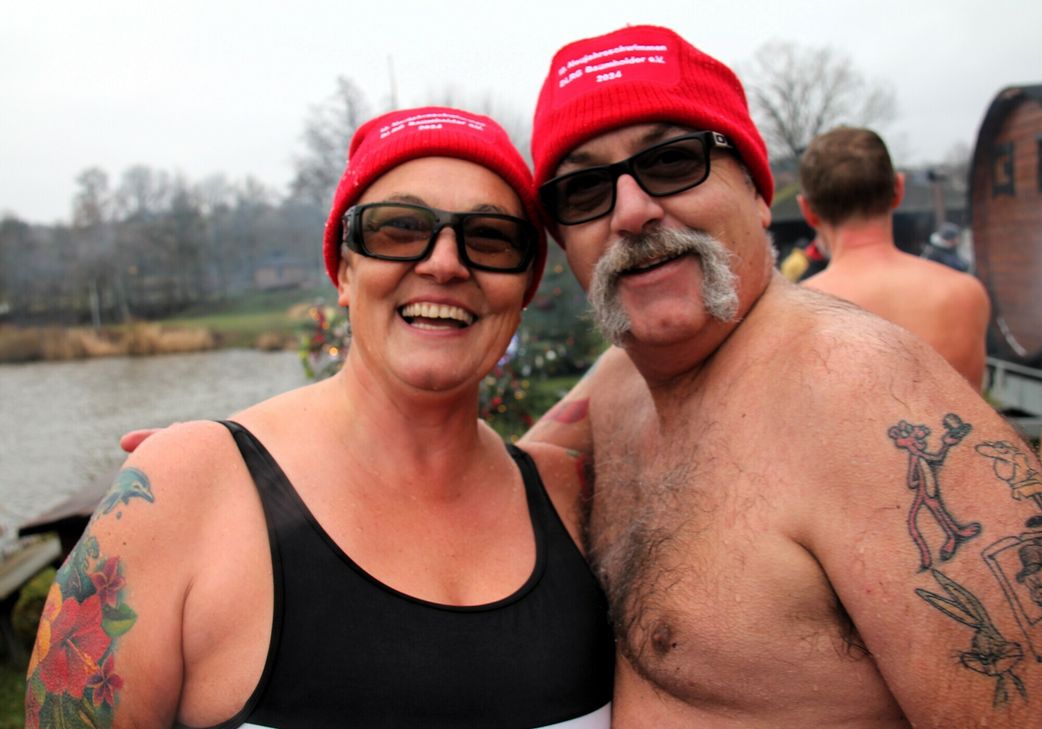 Obwohl er aus Michigan, einem der kühleren US-Bundesstaaten, kommt, habe er so etwas noch nie erlebt. Und er ist begeistert. "Es war unglaublich". Aber, und da ist er sich mit Keenan einig: "Es war sehr kalt." So kalt, dass sich Martin Ziemer aus Glan-Münchweiler nach seiner Premiere im vergangenen Jahr eigentlich gesagt hatte: So etwas mache ich nie wieder. Doch sein Kumpel Markus Lauer aus Niederhambach kündigte am Samstagabend spontan an: "Morgen springen wir in den Weiher." Also ist auch Ziemer wieder mit von der Partie. Und glücklich: "Immer wieder schön, in der Heimat solche Dinge mitzumachen." Sagt er bibbernd und wärmt sich sogleich auf im heißen Pool, der nach dem Eisschwimmen ununterbrochen belegt ist. Genau wie die Fass-Sauna ist dies ein schöner Service für alle, die sich aufwärmen wollen. Auch Thomas Johann nutzt diese Gelegenheit nach seiner zweiten Teilnahme. Und lobt: "Das ist top organisiert hier." Pool und Sauna lobt auch Graham Wuepper, der mit seiner Frau Sonya aus Ramstein zum Schwimmen gekommen ist. "Es war kalt, aber gut", freut sich der 54-Jährige nach seiner Premiere. Seine Frau war schon im vergangenen Jahr dabei und sagt: "Ich unterstütze immer wieder gerne die DLRG." Zumal Graham meint: "Das ist ein guter Weg, um das alte Jahr rauszuswaschen."