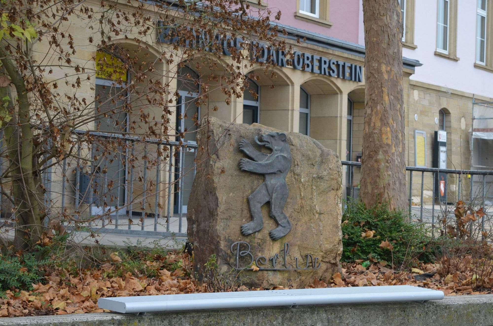 Diese Gedenksteine wurden damals in vielen Städten Deutschlands aufgestellt und stehen heute unter Denkmalschutz, nachdem die Wiedervereinigung Deutschlands schon lange realisiert wurde. Am ursprünglichen Standort des Gedenksteines, in der Grünanlage in der Mainzer Straße etwa in der Höhe der Feuerwache 1, wurde er in einer feierlichen Zeremonie am 7. Oktober 1962 vom damaligen Oberbürgermeister Leberecht Hoberg enthüllt. Durch den Bau der Emil-Kirschmann-Brücke wurde der Standort sehr unattraktiv und der Berliner Bär fand im Jahr 1985 seinen Platz in der Grünanlage neben dem Stadthaus. Am früheren Stadthaus und heutigen Polizeigebäude soll in Kürze am Standort des Gedenksteins ein Behindertenparkplatz entstehen, so dass der Berliner Bär schon wieder eine neue Heimat suchen musste. Diese fand er jetzt im Blumenbeet am Bahnhofsvorplatz, dem Willy-Brandt-Platz.