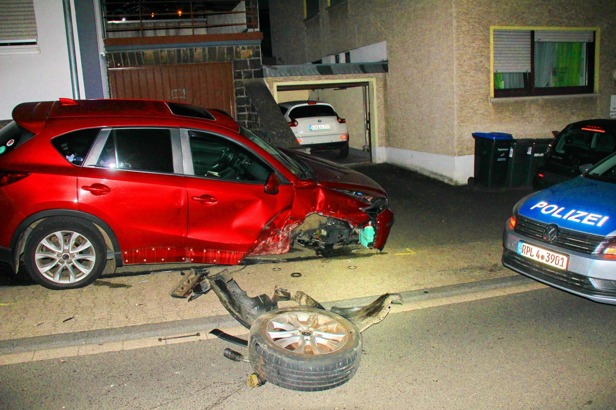 Der Golf blieb ebenfalls mit Totalschaden auf der Fahrbahn liegen. Alle Fahrzeuge mussten abgeschleppt werden. Der Fahrer und seine beiden Mitfahrer blieben unverletzt. Der 18-jährige Fahrer stand merklich unter Alkoholeinfluss. Ein Atemalkoholtest erbrachte ein Ergebnis von über 2 Promille. Nach der Sicherstellung des Führerscheins wurde eine Blutprobe entnommen. Den 18-jährigen Fahranfänger erwartet nun ein Ermittlungsverfahren wegen Gefährdung des Straßenverkehrs unter Alkoholeinfluss, sowie eine längere Führerscheinsperre. Foto: Schmitt
