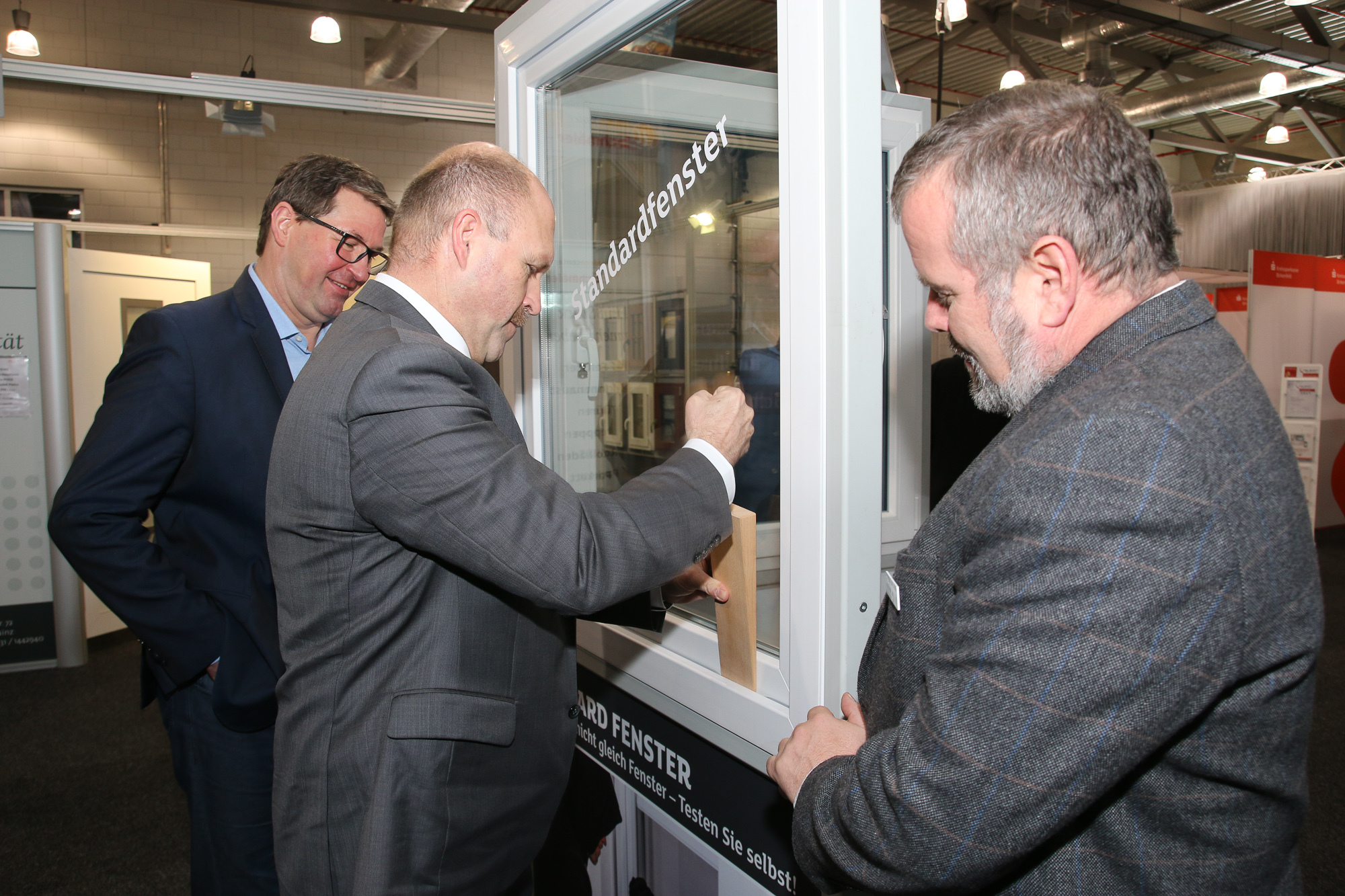 Bürgermeister Friedrich Marx (Mitte) eröffnete mit Messeleiter Kai-Uwe Hille (links) die Baumesse. Foto: Peters