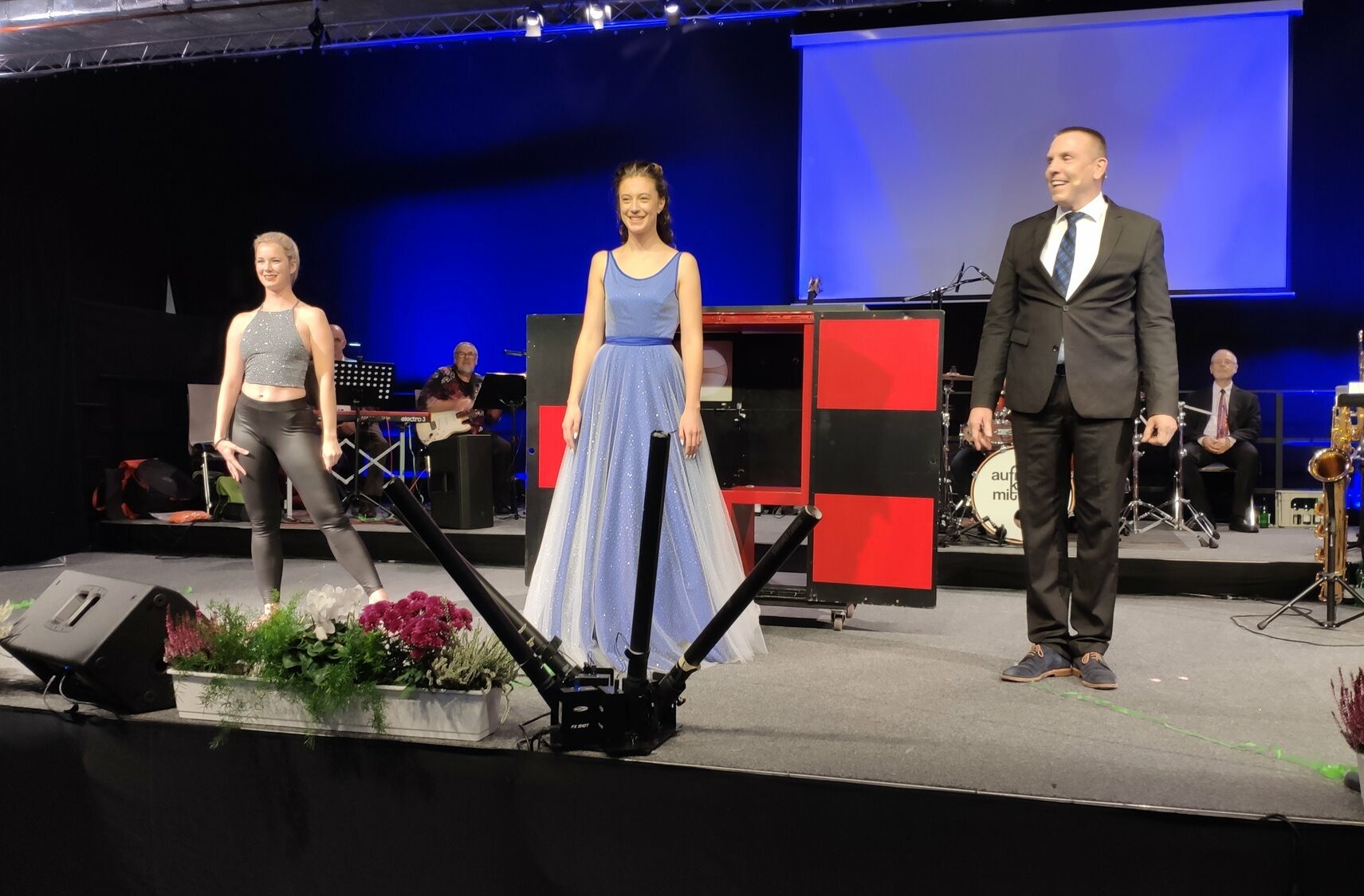 Die junge Frau ist in Idar-Oberstein geboren und lebt in Kirschweiler. Mit ihren 18 Jahren dürfte die Schülerin der Gymnasialen Oberstufe - sie macht im kommenden Jahr Abitur - als 23. Edelsteinkönigin wohl die jüngste in der Geschichte des Amtes sein. Gerne hätte man nach der Krönung noch ein wenig mehr über sie erfahren, das einzige Manko an diesem gelungenen Samstagabend in der Messehalle.Gekrönt wurde sie von Vorgängerin Bettina Reiter, die von den rund 150 Besuchern mit minutenlang stehend dargebrachtem Applaus verabschiedet wurde. Verdientermaßen, denn sie hat ihre vierjährige Amtszeit, aufgrund von Corona doppelt so lang wie üblich, mit Charme, Intelligenz, Ideenreichtum und strahlendem Optimismus erfüllt.