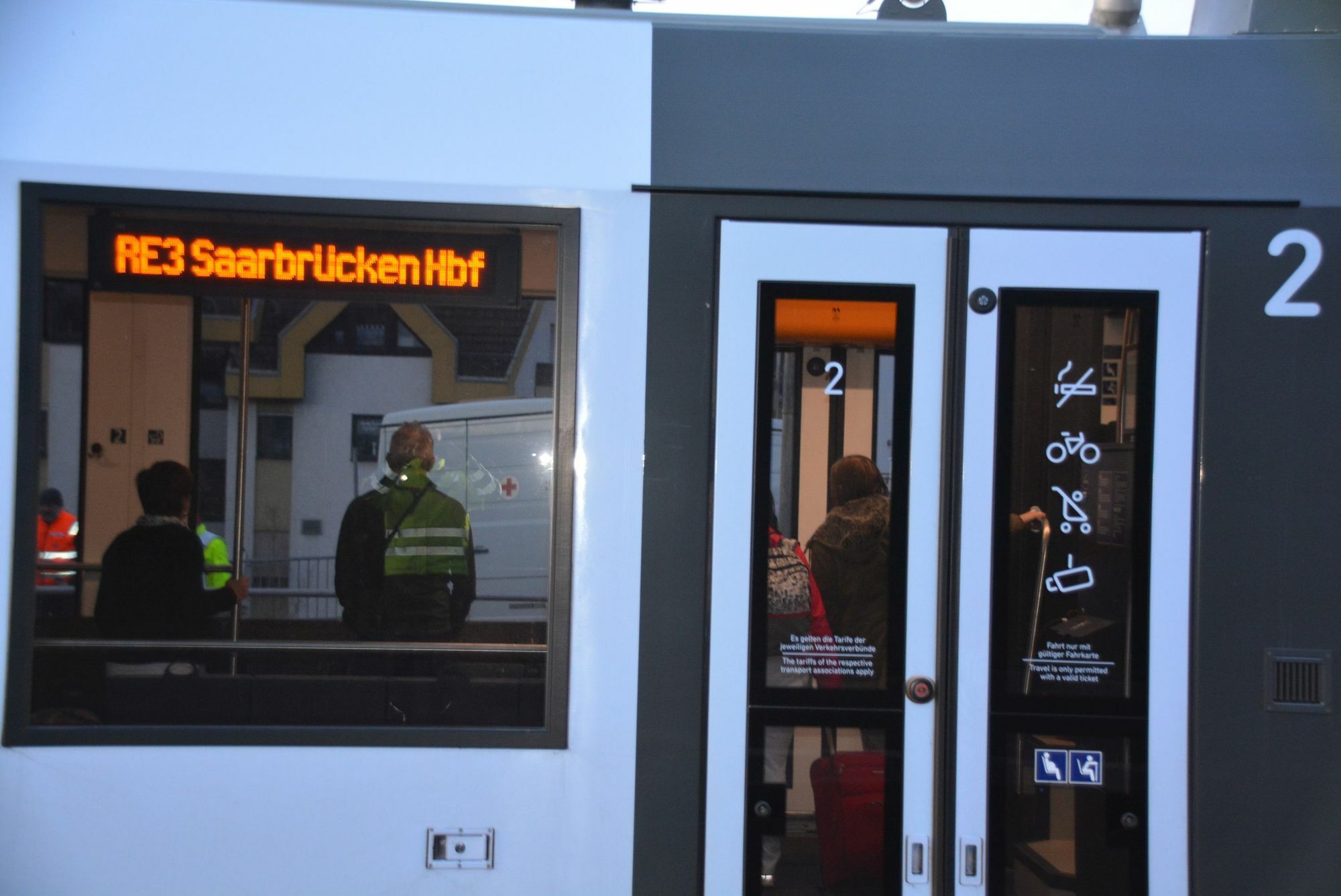 Der Saarländer hatte in den letzten Tagen geschäftlich in Italien zu tun. Bereits am Samstag suchte er in Süditalien einen Arzt auf, der ihm grünes Licht für den Rückflug von Bari über Mailand nach Frankfurt gab. In der Bankenmetropole stieg er um 14.23 Uhr in den Regionalexpress Richtung Saarbrücken, fühlte sich offenbar nicht wohl. In Idar-Oberstein verbrachten zwei Rettungssanitäter unter Vollschutz den Patienten in einen Krankenwagen. Währenddessen nahmen die Leiterin des Gesundheitsamts und der Leitende Notarzt die Personalien der 40 Fahrgäste auf, die sich in dem Großraumabteil befanden. Alle würden direkt informiert, sobald das Testergebnis vorliegt. 30 ehrenamtliche Helfer der Schnelleinsatzgruppen Sanitätsdienst, Betreuung und Verpflegung standen bereit, um sich um die im Zug verbliebenen Gäste zu kümmern. Der RE konnte gegen 18 Uhr seine Fahrt fortsetzen.