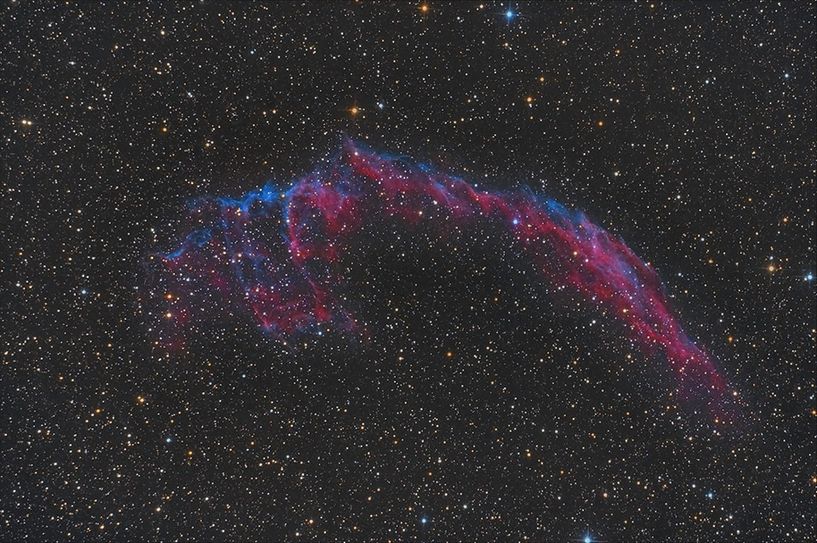 Diese Aufnahme vom östlichen Teil des Cirrusnebels im Sternbild Schwan, rund 1 500 Lichtjahre von der Erde entfernt, gelang unserem Leser Jörg Heyderich.