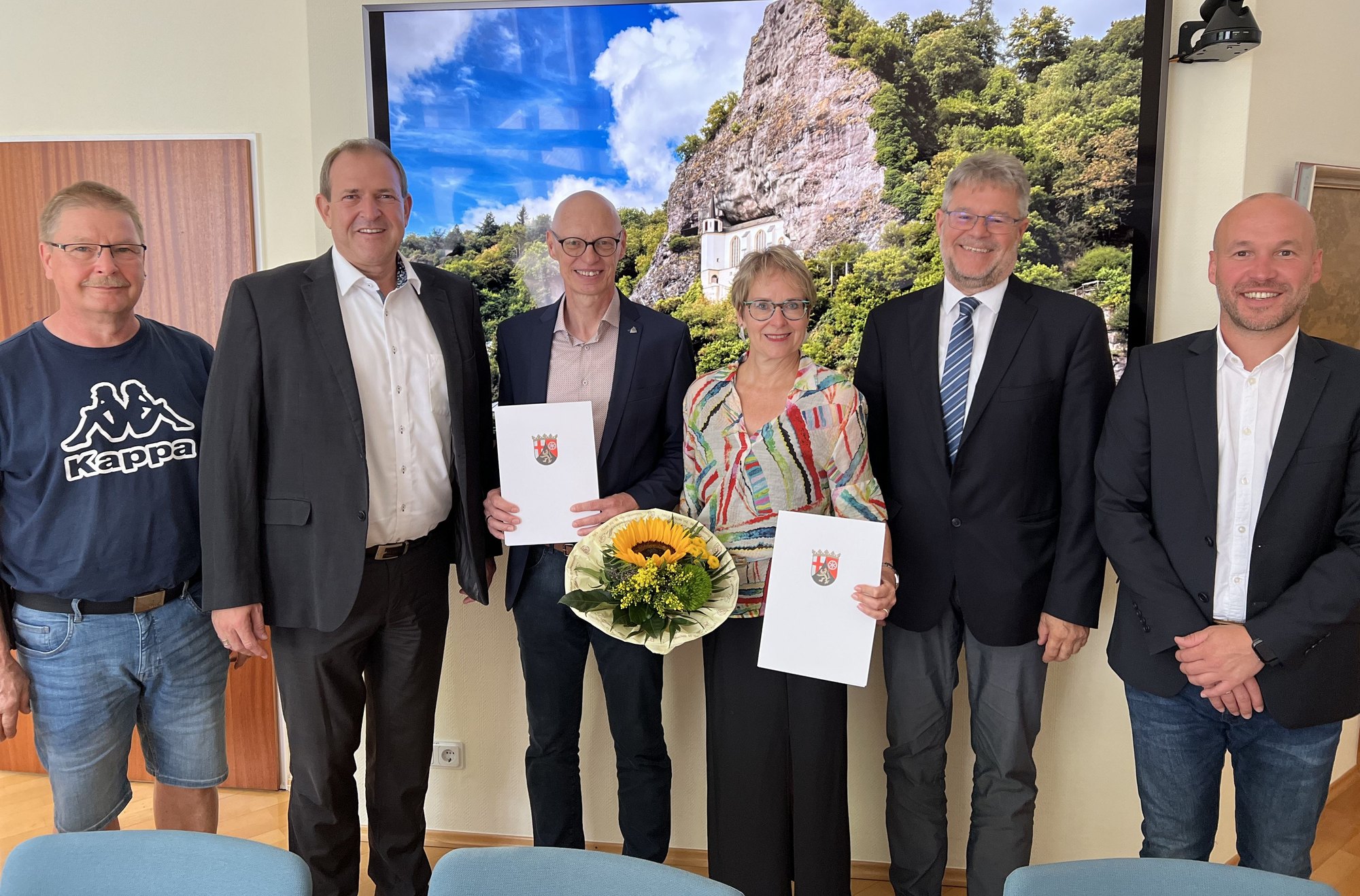 Im Anschluss betonte Volker Poes das kollegiale Engagement der beiden über die Jahre: "Sowohl Stefani als auch Michael sind sehr beliebt in der Belegschaft:" Dazu hatte er von verschiedenen Anlässen Fotos der beiden gesammelt und als Collage zusammengestellt. Zuletzt beglückwünschte nochmals Oberbürgermeister Frank Frühauf die beiden: "Für die Herausforderungen der kommenden Jahre, müssen wir als Stadtverwaltung noch stärker zusammenrücken und zusammenarbeiten - hierbei hat das stets professionelle, zuverlässige als auch überaus kollegiale Auftreten von Stefani und Michael Brill vorbildlichen Charakter, weshalb ich euch zu eurem Dienstjubiläum sehr herzlich gratuliere." Dazu überreichte er den Jubilaren noch Dankurkunden und Präsente.