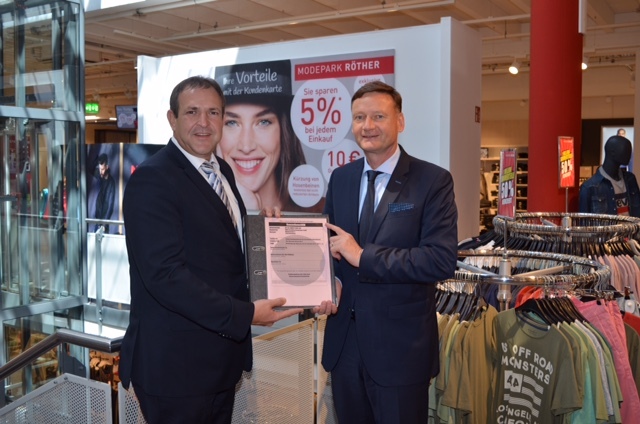 Das war die letzte Hürde vor Erteilung der Baugenehmigung, die OB Frühauf dann auch gleich mitgebracht hatte und an den Firmenchef übergab. Entsprechend groß ist nunmehr auf beiden Seiten die Freude darüber, dass es jetzt bald losgehen kann. Spätestens im Herbst 2018, bei gutem Bauverlauf auch früher, soll der Modepark Röther in Idar-Oberstein mit einer Verkaufsfläche von 6000 Quadratmetern eröffnen. Ende 2016 sorgte die Nachricht für großes Aufsehen in der Schmuck- und Edelsteinstadt: Der Modepark Röther kauft das seit vielen Jahren leer stehende frühere Hertie-Kaufhaus. Das 1972 gegründete Familienunternehmen mit Sitz in Michelfeld, das mittlerweile in zweiter Generation von den Brüdern Michael und Thomas Röther geführt wird, betreibt aktuell 40 Häuser in elf deutschen Bundesländern sowie in Österreich und beschäftigt 2.100 Mitarbeiter und 140 Auszubildende. Der Modepark in Idar-Oberstein soll auf 6.000 Quadratmetern Verkaufsfläche Markenwelten für Damen, Herren, Young Fashion, Kinder, Wäsche und Accessoires von mehr als 400 renommierten Marken präsentieren, im ersten Schritt sollen 40 Arbeitsplätze entstehen. „Ich freue mich sehr, dass nunmehr alle Voraussetzungen für die Erteilung der Baugenehmigung erfüllt sind“, erklärte Oberbürgermeister Frühauf nach der Vertragsunterzeichnung. Der Bauantrag lag bereits seit einiger Zeit beim Stadtbauamt vor und war fertig geprüft. Nach der Unterzeichnung des Kaufvertrages für das Parkhaus konnte daher die Baugenehmigung ausgehändigt werden. Nunmehr muss nur noch die Umschreibung im Grundbuch erfolgen. Auch Michael Röther begrüßte den guten Abschluss der Verhandlungen: „Das wird ein toller Laden in Idar-Oberstein, ich freue mich schon darauf.“
