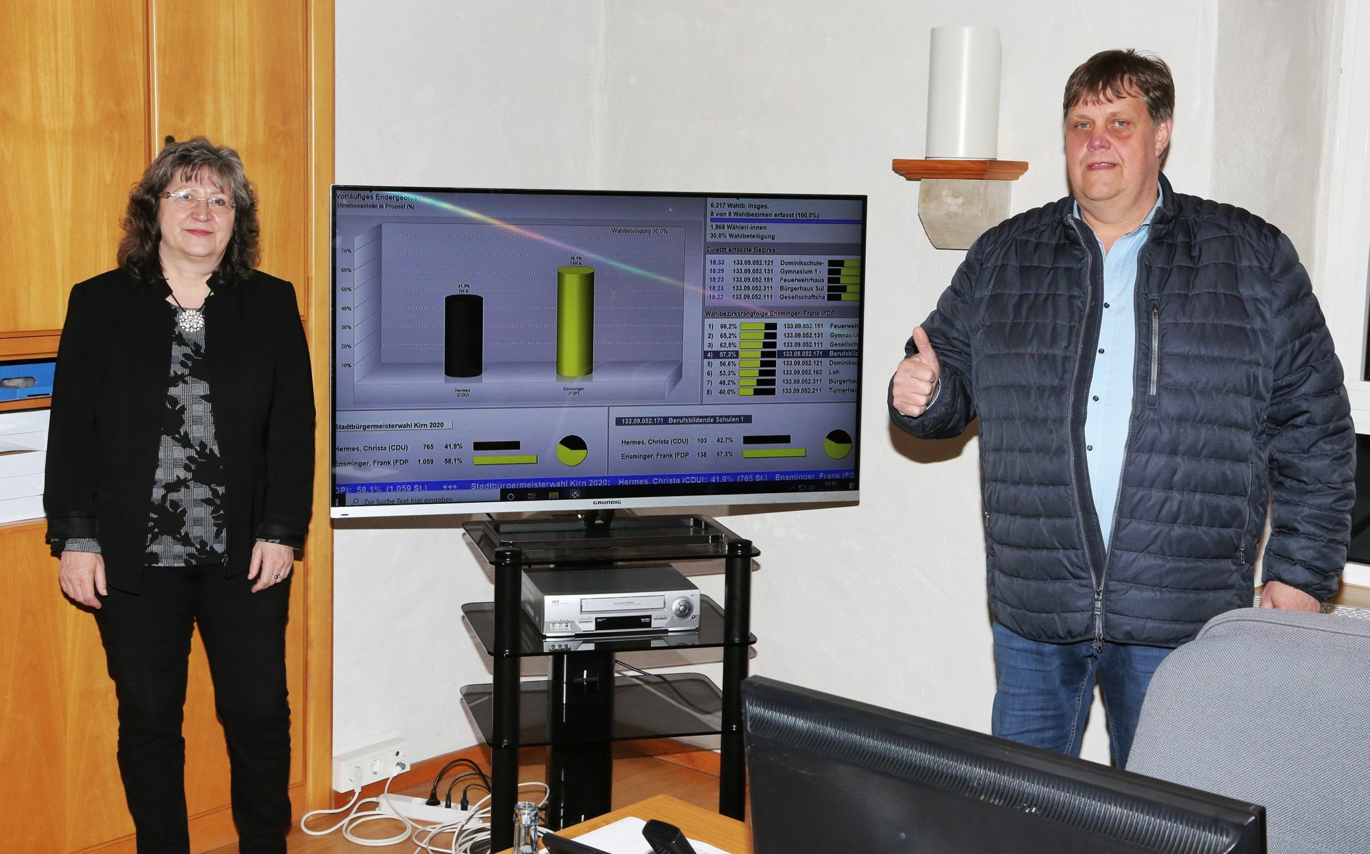 Er setzte sich gegen seine Kontrahentin Christa Hermes (CDU) durch. Ensminger kam auf 58,1 Prozent der Stimmen, Hermes erzielte 41,9. Die Wahlbeteiligung war mit 30 Prozent sehr niedrig, was auf das grassierende Corona-Virus zurückzuführen ist. Daher war die Wahl am heutigen Sonntag sehr umstritten.