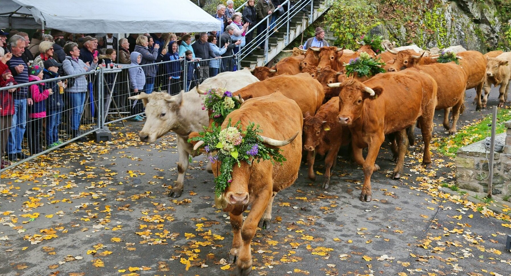 Zwischen 11 und 12 Uhr kommt die Herde der Familie Bambach von der Hahnenbacher Alm ins Winterquartier. Gefeiert wird wie gewohnt vor dem Rathaus mit Spießbraten aus dem Backes und Weiswürsten. »Ich bin sehr froh, dass die traditionelle Veranstaltung wieder stattfinden kann und der Termin noch in den September fällt«, freut sich Ortsbürgermeister Matthias Vier. »Im Oktober 2019 war es eher ein kalter, verregneter Sonntag.«