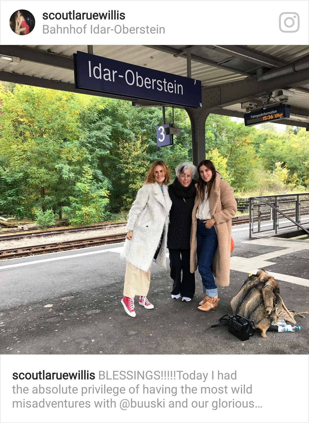 Scout (26) und Tallulah Willis (23) waren mit der Mutter des Action-Schauspielers nach Idar-Oberstein gereist. Willis wurde am 19. März 1955 als Sohn eines US-Soldaten und Mama Marlene in der Stadt der Edelsteine zur Welt gekommen. Die Mädchen schauten sich das Geburtshaus ihres Vaters auf der Lay an. Später ging es vom Bahnhof weiter nach Hönebach (Landkreis Hersfeld-Rotenburg im Nordosten von Hessen). Denn dort haben Scout und Talluah noch einen prominenten "Fast"-Onkel: Den "Wildecker Herzbuben" Wilfried Gliem (71). Er ist der Gatte von Elke, einer Cousine von Oma Marlene. Die Mädchen fühlten sich sichtlich wohl auf ihrer Reise in die Vergangenheit und Scout postete fleißig ihre Erlebnisse auf Instagram.