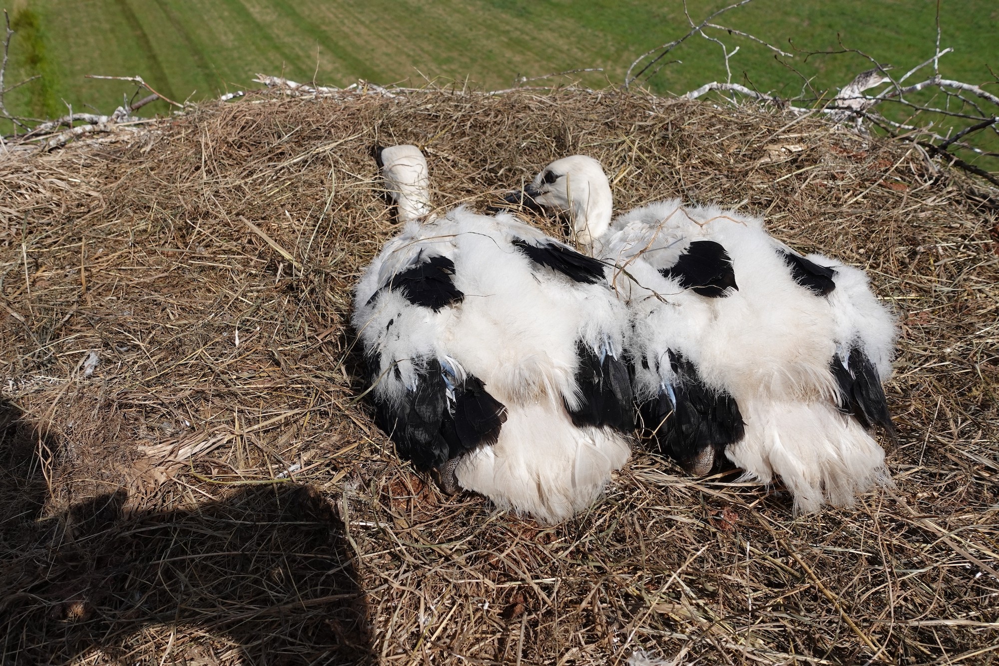 In Rimsberg flattert in diesem Jahr eine echte Besonderheit durchs Storchenkapitel: Dort ließ sich in der zweiten Aprilhälfte ein blutjunges Storchenpaar nieder. Lange Zeit ging man davon aus, dass Störche erst mit drei bis fünf Jahren geschlechtsreif werden - doch immer häufiger zeigen sich auch Zweijährige bereits sesshaft. So auch dieses Paar, das ein altes Elsternnest auf einem Strommast zu einem wahren Wohnturm ausgebaut hat. Die Störchin schlüpfte 2023 in Asweiler im Kreis St. Wendel, ihr Partner wurde im selben Jahr in Morbach beringt - und ist für Martina Kohls ein ganz besonderer "Knabe", denn sie selbst hat ihm damals den Ring angelegt. Von ursprünglich zwei Jungvögeln lebt aktuell noch ein etwa fünf Wochen alter Jungstorch - ein kleiner Hoffnungsträger auf großem Horst. Auch in Gimbweiler zeigt sich, wie erfolgreich gezielte Unterstützung wirken kann: Nachdem sich dort im Frühjahr 2022 ein Storchenpaar auf einem Strommast niederlassen wollte, wurde der Rohbau entfernt und auf einer Wiese am Mörschbach, mit Hilfe der OIE und deren Netzbetreiber, eine Nisthilfe auf einem ehemaligen Mast errichtet. Diese wurde bereits im darauffolgenden Jahr angenommen - und 2025 brütet dort nun schon zum dritten Mal ein Paar. Die aktuelle Nestherrin ist ebenfalls erst zwei Jahre alt und stammt vom Dach der katholischen Kirche in Gutach im Breisgau. Zwei Jungstörche wachsen derzeit in diesem Nest heran - ein schönes Zeichen für die Wirksamkeit nachhaltiger Maßnahmen. In Hahnweiler sieht es ganz danach aus, als hätte sich dasselbe Brutpaar wie im vergangenen Jahr erneut für das gleiche Nest entschieden - ein schönes Zeichen für die Treue dieser Tiere zu ihrem Horst. Drei Küken schlüpften in diesem Frühjahr, doch die extreme Trockenheit und damit verbundene Nahrungsknappheit forderten ihren Tribut: Nur eines der Jungtiere überlebte. Umso wertvoller ist dieser kleine Überlebende - und umso wichtiger ist es, Lebensräume wie diesen langfristig zu sichern und zu stärken.