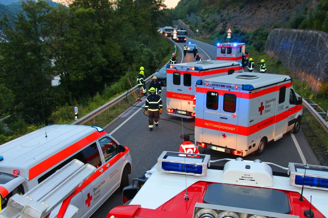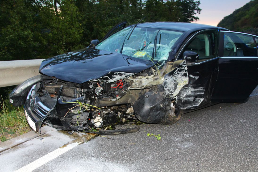 Bei einem Autounfall auf der B 41 sind am Samstagmorgen vier Männer schwer verletzt worden. Die vier Insassen eines VW waren mit dem Wagen um 7.10 Uhr von der B 41 abgekommen. In Fahrtrichtung Idar-Oberstein, 150 Meter vor der Abfahrt Kirn West, prallte das Auto gegen die Stützmauer. Durch den Aufprall, so berichtet die Feuerwehr, ließ sich die Fahrertür nicht mehr öffnen. Daraufhin wurde die Kirner Feuerwehr, Notarzt und vier Rettungswagen unter dem Stichwort „Verkehrsunfall eingeklemmte Person" alarmiert. Bei Eintreffen waren die Personen bereits aus dem Fahrzeug befreit und wurden vom Rettungsdienst versorgt. Die Feuerwehr sicherte den Verkehrsraum ab und stellte den Brandschutz sicher. Außerdem wurden die ausgelaufenen Betriebsstoffe eingedämmt. Nach rund zwei Stunden wurde die Einsatzstelle an die Straßenmeisterei übergeben. Die Bundesstraße war voll gesperrt, der Verkehr lief aber ohne Probleme durch Kirn, da es kein Werktag war. Die Kirner Feuerwehr war unter ihrem stellvertretenden Wehrleiter Andreas Kaiser mit 15 Personen im Einsatz. Fotos: Schmitt