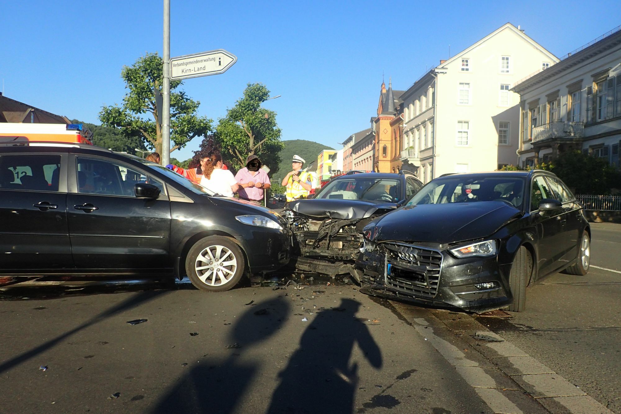 Durch den starken Aufprall wurden die beiden Fahrzeuge auf den Mazda einer Frau geschleudert, welche vom Bahnhofparkplatz nach links auf die Bahnhofstraße auffahren wollte. Der Fahrer des Audi und der Fahrer des Hyundai wurden durch den Zusammenstoß leicht verletzt. Sie mussten im Krankenhaus behandelt werden. Die Bahnhofstraße war während der Bergungsmaßnahmen für 90 Minuten halbseitig gesperrt. Es kam zu keinerlei Verkehrsstörungen.