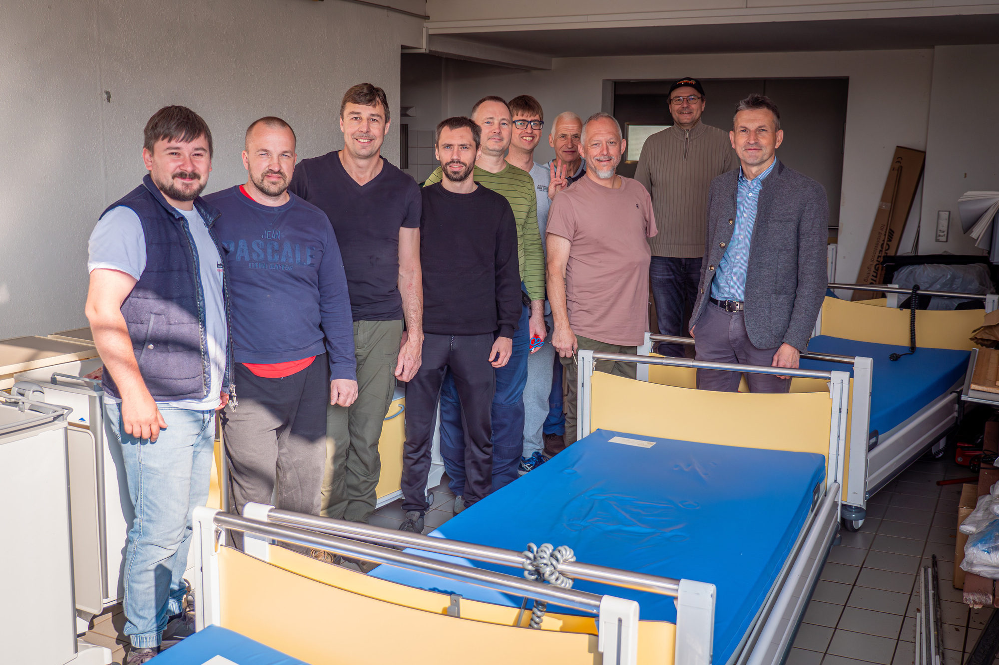 Verwundete Soldaten und Zivilisten, die versorgt werden müssen kommen zu den Fällen, die die Krankenhäuser im Normalbetrieb behandeln müssen. Es wird überall medizinisches Material benötigt. Vor diesem Hintergrund sind die drei Brüder Winfried, Wolfgang und Hans-Jürgen Werle, die sich im Landkreis Birkenfeld in der Akquise von Spenden und Hilfsgütern für die Ukraine engagieren, an das Klinikum Idar-Oberstein herangetreten. Die lose Gruppe um die Brüder Werle steht in engem Kontakt mit der Ukraine Hilfe Worms und deren Vorsitzenden Maxim Juschak, die regelmäßig Hilfsgüter in großem Stil in die Ukraine bringen. Das Klinikum konnte mit 27 ausgemusterten, aber noch funktionalen Krankenhausbetten, Beistelltischen, sowie einer Vielzahl von Rollstühlen und Rollatoren und ausgemusterten medizinischen Geräten die Hilfsorganisation unterstützen.