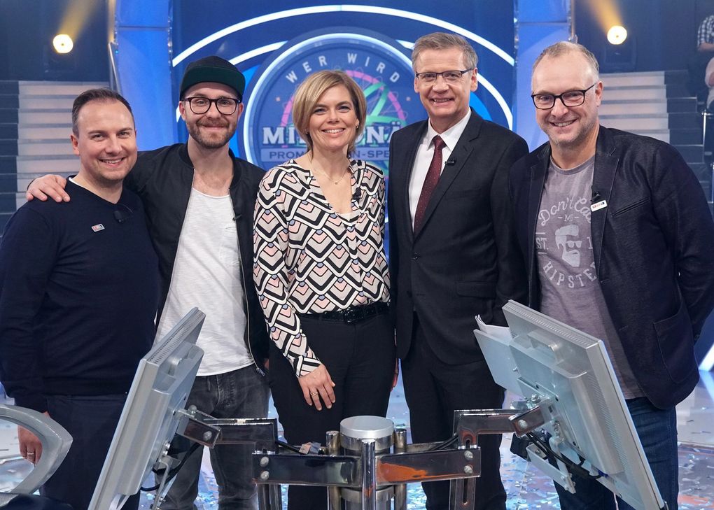 Eines sei dennoch verraten: Julia Klöckner ist gleich zu Beginn dran, weil sie die Eingangsfrage unter den vier Prominenten am schnellsten richtig lösen konnte ... Vier Prominente spielen für einen guten Zweck. Neben Julia Klöckner sind Sportkommentator Frank Buschmann, Sänger Mark Forster, gebürtig aus Kaiserslautern, und Fernsehkoch Tim Raue dabei. Jeder Cent des Gewinns wird für notleidende Kinder in Deutschland und der Welt gespendet. Kollegialen Spaß hatten alle Vier bei der Sendung – und Günther Jauch brilliert mit seinem besten Pokergesicht.