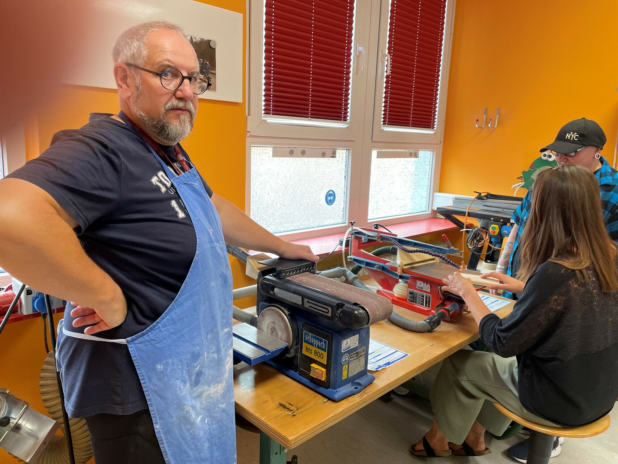 Erwachsene Menschen mit Persönlichkeitsstörungen, Depressionen, Schizophrenie, die alle wenig bis gar nicht belastbar sind. Auf deren Bedürfnisse wird eingegangen, beim Erstellen des Monatsplans oder Auswahl der Ausflugsziele. In einem Ruheraum können die Tagesgäste abschalten. Im Gruppenraum kann gelesen werden, manche spielen Darts, Getränke stehen bereit. Um Punkt 12 gibt‘s Mittagessen. Unter Anleitung lernen hier die Besucher, lecker und gesund Speisen zuzubereiten, wozu auch der Einkauf der Lebensmittel gehört. Außerdem gibt es verschiedene Beschäftigungsräume, wo sich die Besucher in unterschiedlicher Weise betätigen können. Eine ältere Dame versucht sich mit Seidenmalerei, zwei Männer basteln Grußkarten. Wieder andere sägen, bohren und werkeln mit Holz oder Ton. Die daraus entstehenden Produkte, wie Holzfiguren, Tassen, Teller, Schüsseln, Seifen und Glückwunschkarten, werden auf Weihnachtsmärkten oder im kleinen Dorfladen in Hottenbach feilgeboten, Erlöse kommen den gemeinnützigen Zwecken der Lebenshilfe zugute. »Kontinuierliche Beschäftigung tut gut, es gibt hier aber keinen Akkord«, schmunzelt eine Mitarbeiterin.