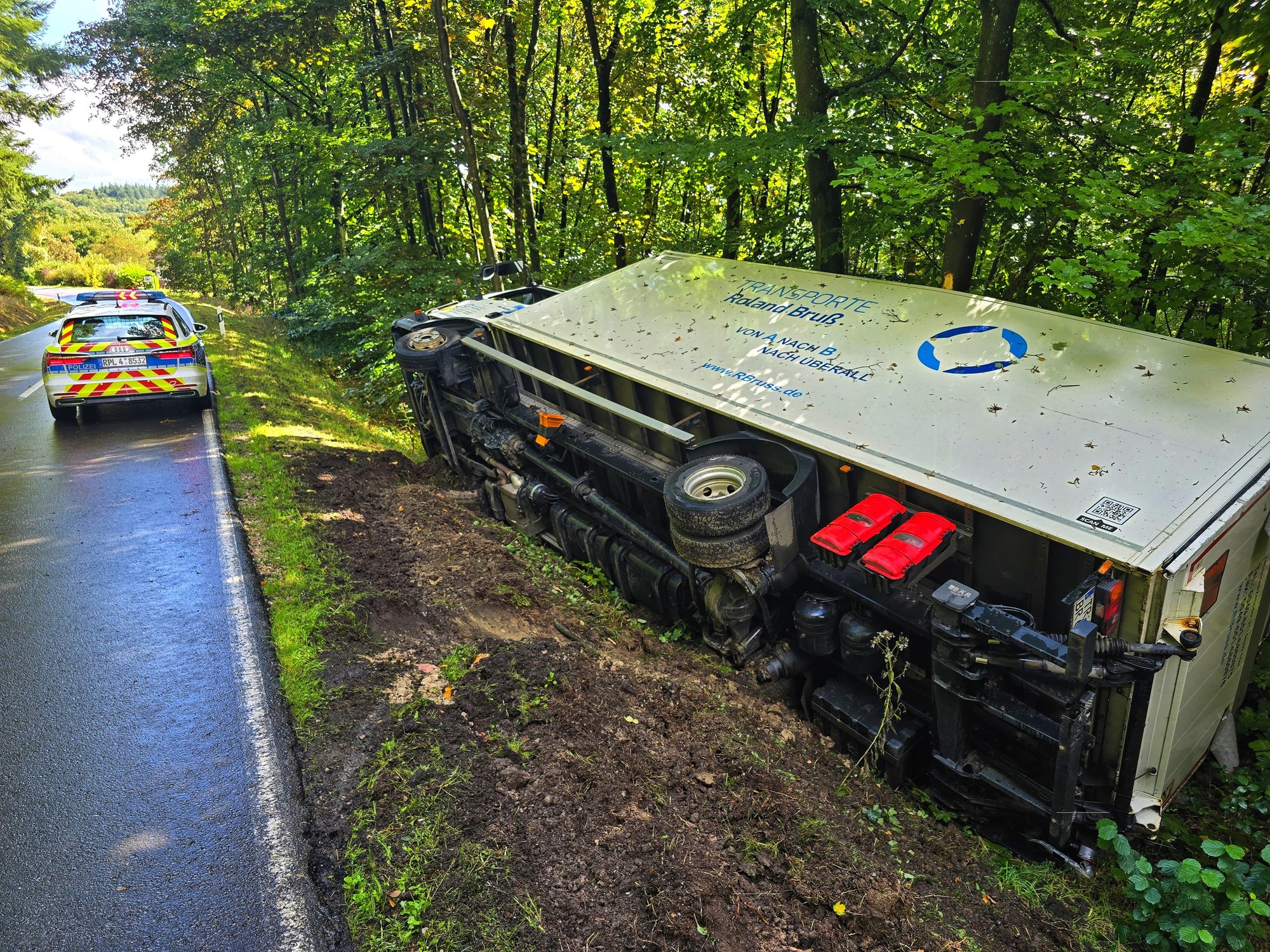 Lkw stürzt Böschung hinab: Vollsperrung auf der L162