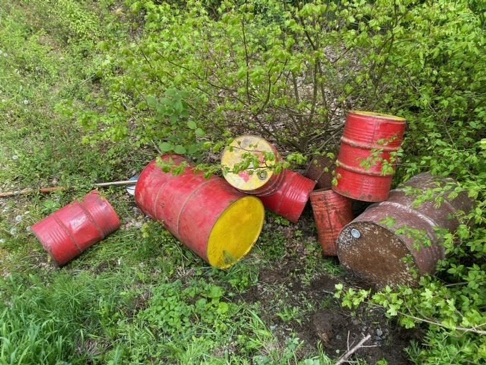 Beim Eintreffen der Polizei vor Ort konnten insgesamt elf Fässer festgestellt werden. Es handelte sich überwiegend um -dem Gewicht nach- leere aber mit Restinhalten belastete, teilweise stark korridierte Mineralöl-Fässer mit Fassungsvermögen zwischen 50 und 100 Litern. Da sich der Mitteiler das Kennzeichen notiert hatte richten sich die Ermittlungen zunächst gegen den in Frankfurt gemeldeten Fahrzeughalter.