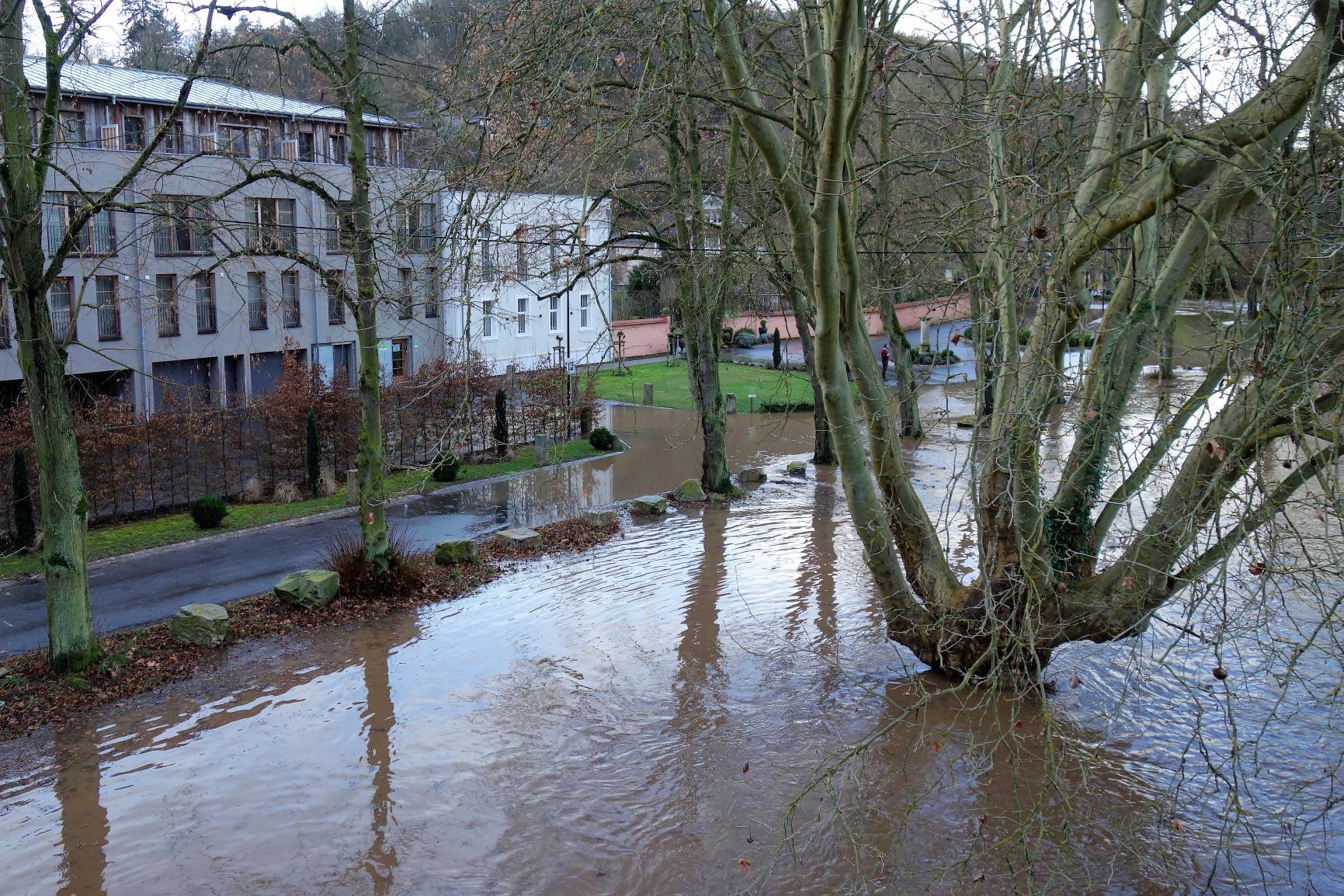 Der Nahegarten am Barfußpfad ist überschwemmt. Wohnhäuser sind allerdings nicht bedroht. Der Pegel Martinstein, der über Nacht um ca. 50 cm gestiegen war, fällt schon wieder, nachdem 4 Meter knapp überschritten wurden. Der Höchststand von 5,82 Meter aus dem Jahr 1993 wird nicht erreicht. Aufgrund der schweren Regenfälle kam es in der Nacht zu mehreren Überschwemmungen im Zuständigkeitsbereich der Polizei Kirn. In Königsau auf der B 421 war die Fahrbahn überflutet, in Langenthal blockierte ein umgestürzter Baum die Fahrbahn, und zwischen den Ortschaften Rehborn und Odernheim am Glan kam es zu einem leichten Erdrutsch der ebenfalls den Verkehr behinderte. Insgesamt kam es zu keinen größeren Beeinträchtigungen. Die Straßenmeistereien beseitigten die Gefahrenstellen.
