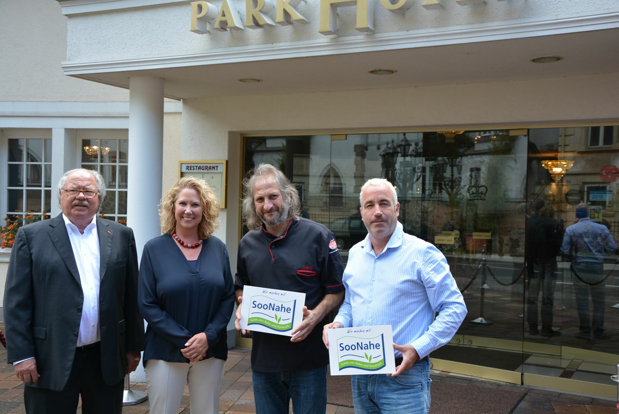 Wilhelm freut sich sehr, dass Parkhotel als neues Mitglied bei „SooNahe“ gewonnen zu haben, als Flaggschiff in der Region und im Startort des Pilgerwegs in Idar-Oberstein. „Die handwerklichen Fähigkeiten und die Kreativität von Renato Manzi werden einen Schub bewirken“. Die Gastronomie sei ein wesentlicher Baustein für die Lebensqualität in der Region. Krieger berichtet, er habe sich Gedanken gemacht, wie das erste Haus am Platz seine Werbung intensivieren könne und sei auf „SooNahe“ gestoßen. „Die haben tolle regionale Produkte, die wir hier einsetzen und mitbewerben können“. Manzi hat bereits die Käserei auf dem Bornwiesenhof besucht. Er kann sich vorstellen, Milchprodukte wie Joghurt und Käse für das Frühstücksbuffet zu verwenden. Das Regionalbündnis „SooNahe“ umfasst 180 Mitgliedsbetriebe, vom Obstbauern bis zum Metzger, vom Winzer bis zum Bäcker.