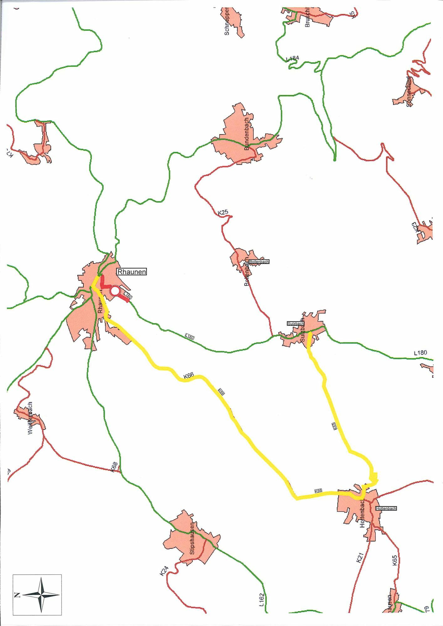 Die Baustelle beginnt an der Kreuzung von Hauptstraße und Poststraße. Die Hauptstraße (L 182) wird im Kreuzungsbereich (L 182 /L180 /L 162) zeitweise einseitig eingeengt und der Verkehr mittels einer Ampel geregelt. Die entsprechende Umleitungsstrecke führt von Rhaunen über die K 66 Hottenbach – K 65 Sulzbach und ist vor Ort ausgeschildert.