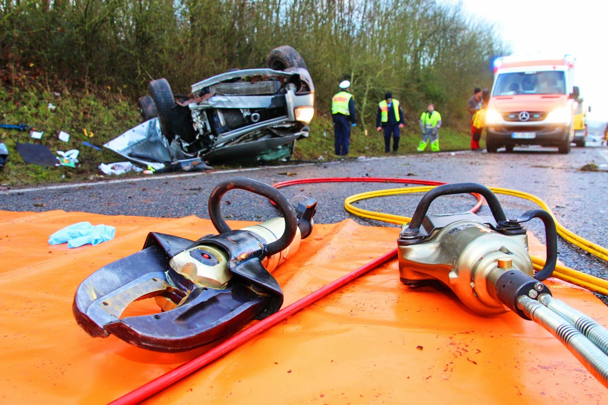Beim Aufprall wurde der Wagen völlig zerstört, es gab eine 30 Meter lange Spur der Verwüstung. Die Fahrerin des Kleinwagens wurde schwer verletzt. Die Feuerwehr Bad Sobernheim war unter Leitung von Stefan Müller mit 19 Kräften im Einsatz. "Wir befreiten die eingeklemmte Frau mit Luftkissenheber und sicherten die Unfallstelle ab", so der Stellvertretende Wehrführer Müller. Die Bundesstraße 41 war in Fahrtrichtung Bad Kreuznach für zwei Stunden voll gesperrt. Der Rettungshubschrauber Christoph 10 aus Mainz flog die Patientin nach Mainz in die Uniklinik. Die Firma Kappler aus Odernheim sammelte die Fahrzeugteile und den zerstörten PKW ein.Foto: Schmitt