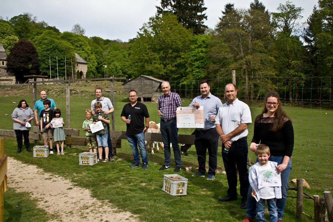Zur Unterstützung des Wildfreigeheges Wildenburg in Kempfeld veranstaltete die Firma Schwollener Sprudel einen Malwettbewerb für Kinder von 2 bis 14 Jahren. Unter allen Einsendungen wurden 3-VIP-Familien-Jahreskarten im Wert von je 60 Euro zuzüglich der passenden Getränke-Erfrischung von Schwollener verlost. Kürzlich übergaben der Leiter Marketing und Vertrieb Tim Frühauf sowie Thorsten Barz von Schwollener Sprudel einen Scheck in Höhe von 500 Euro an den Betriebsleiter Klaus Görg.