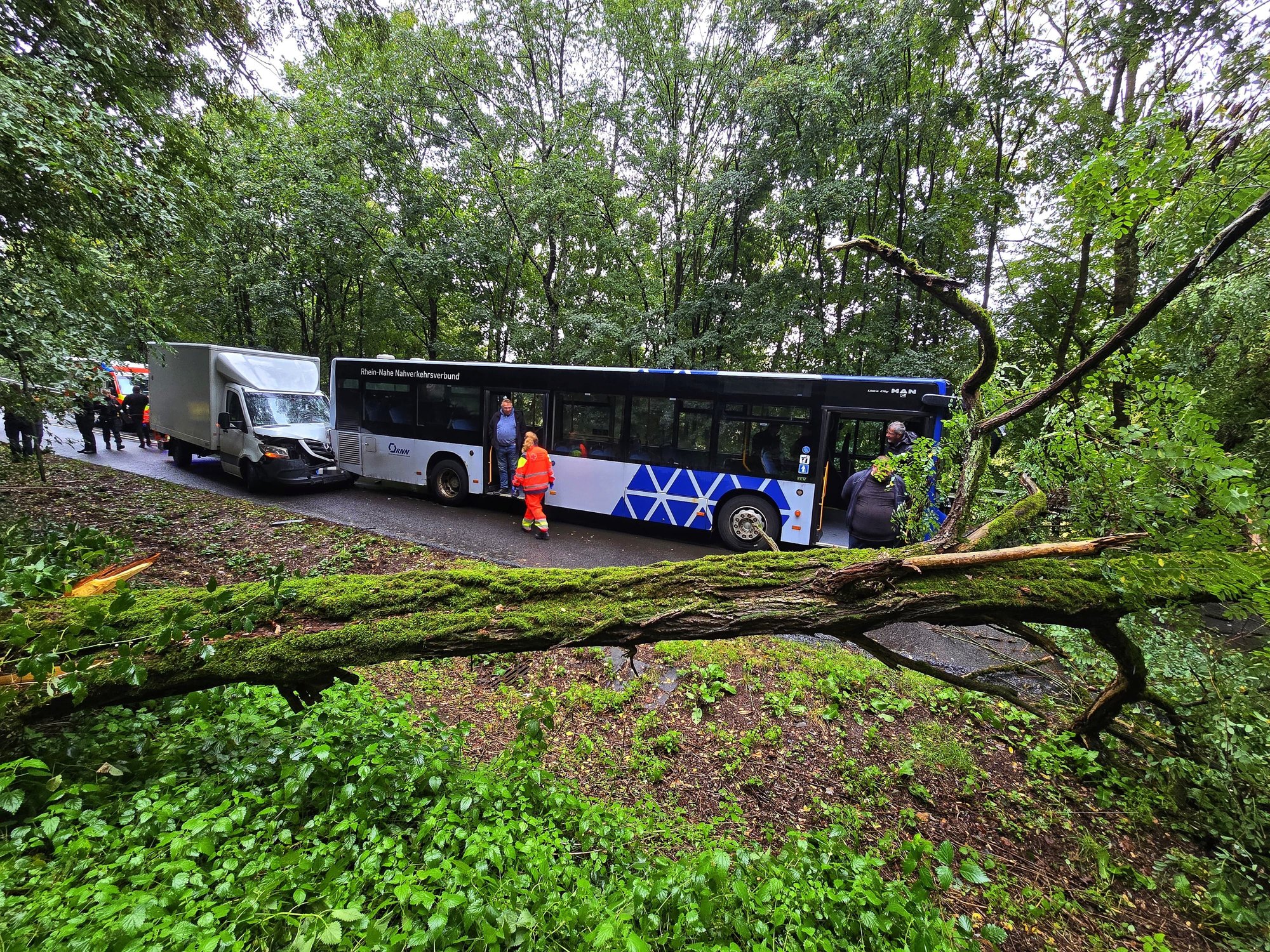 in Linienbus musste plötzlich eine Vollbremsung hinlegen, nachdem direkt vor ihm eine riesige Pappel umgestürzt war. „Ich sah den Baum kippen und reagierte sofort“, schilderte der Busfahrer später. Fahrgäste befanden sich zum Glück keine im Fahrzeug.