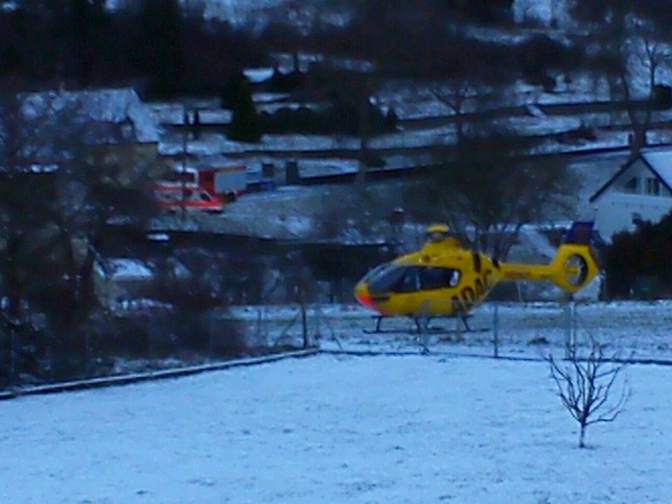Es war zunächst unter dem Fahrzeug eingeklemmt und wurde später mit dem Rettungshubschrauber Christoph 10 aus Wittlich ins Idar-Obersteiner Krankenhaus geflogen. Dort verstarb das dreijährige Kleinkind an seinen schweren Verletzungen. Im Einsatz waren die Feuerwehren Bundenbach und Rhaunen. Foto: Schmitt