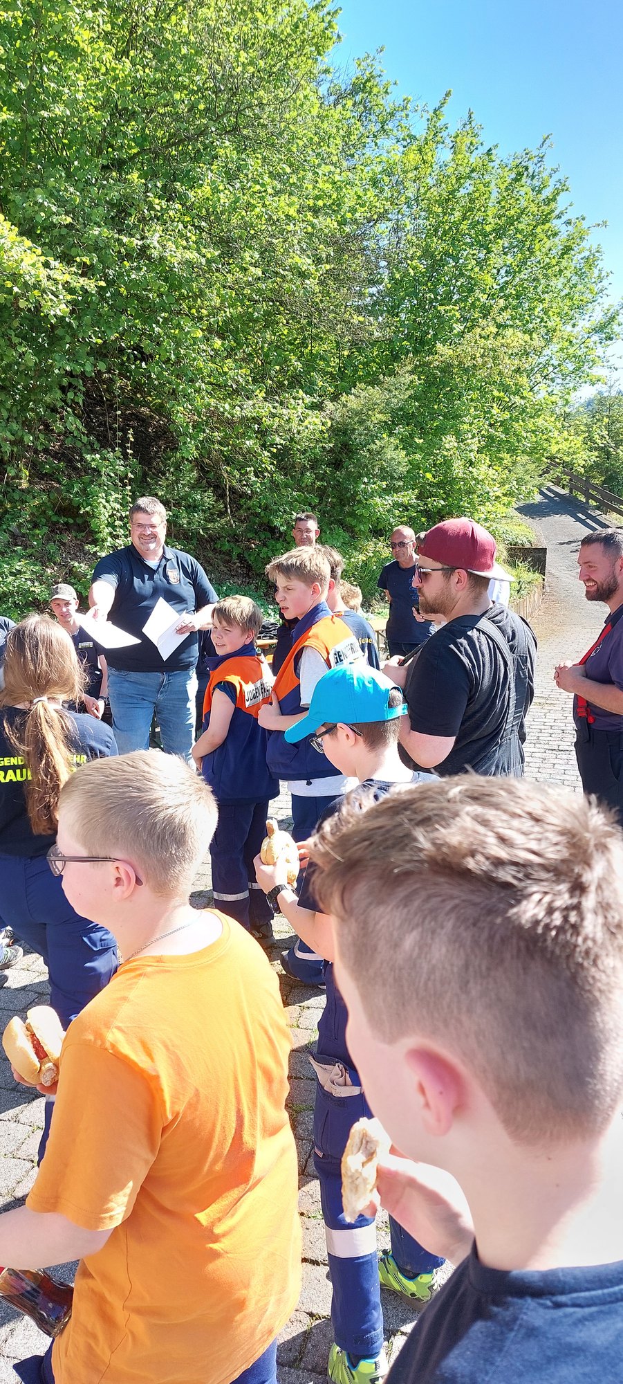 Am Samstag, den 11.05.2024 fand die jährliche Funkübung der Jugendfeuerwehren der VG Baumholder in Frauenberg statt. Die Jugendlichen mussten anhand von Koordinaten, die sie über Funk erfragen mussten, verschiedene Punkte zu Fuß anlaufen und an den Stationen Aufgaben zur Feuerwehr, wie z.B. Knotenkunde, Erste Hilfe usw. absolvieren. Im Anschluss gab es noch Getränke und Würstchen vom Grill. Außerdem gab es noch für jede JFW eine Urkunde vom stellv. VG Jugendwart Axel Müller. VG Bürgermeister Bernd Alsfasser lobte die Arbeit der Jugendwarte und den tollen Ausbildungsstand der Jugendlichen und bedankte sich bei der Feuerwehr Frauenberg für die Planung und Ausführung der Funkübung.
