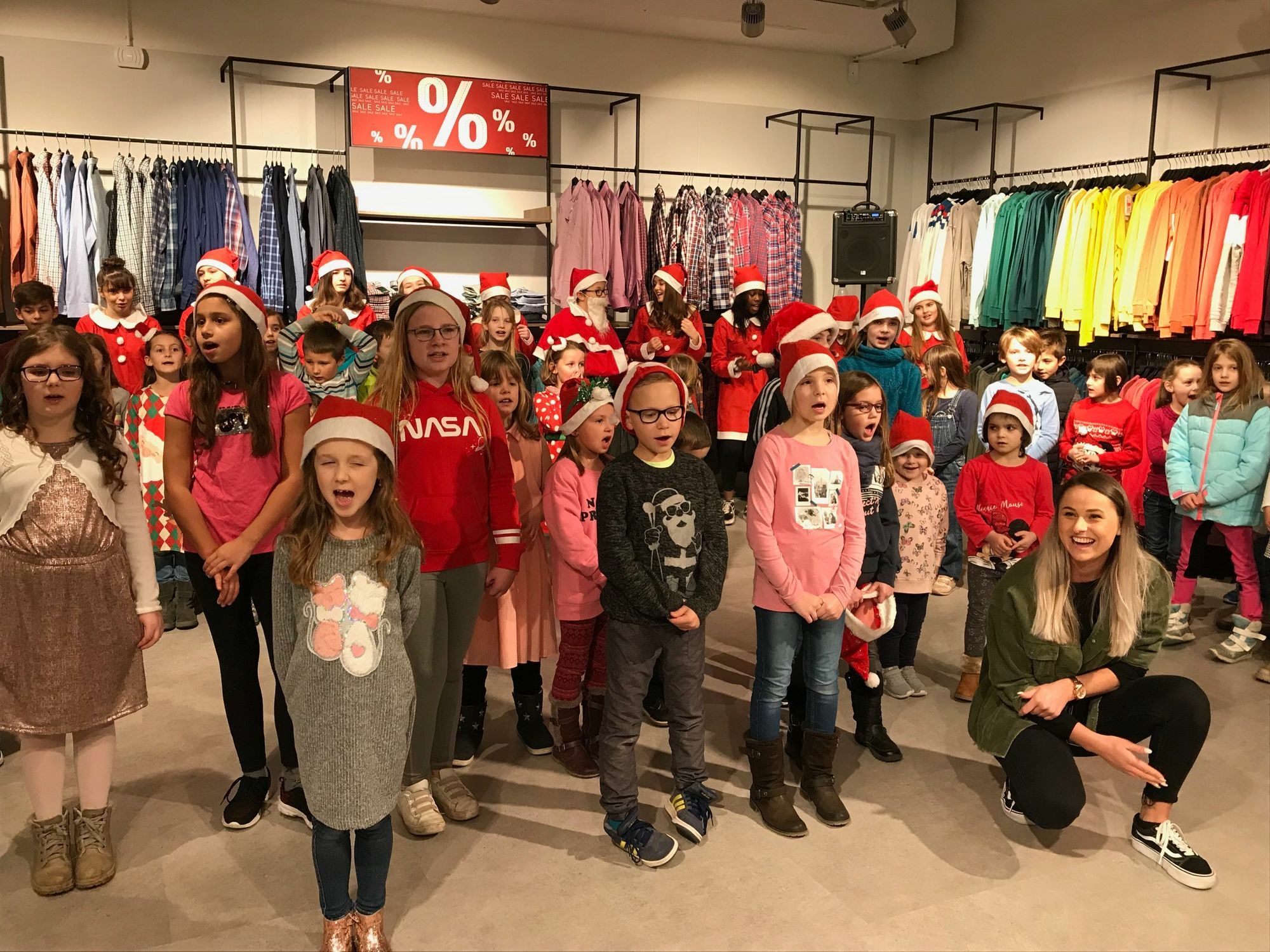 Was für eine Einstimmung auf das Hochfest: Samstagnachmittag, 15 Uhr: Mehrere dutzend Kinder finden sich in der Herrenabteilung im Obergeschoss des Modehauses ein. Ein Junge trommelt, ein anderer spielt Trompete, dann fangen alle an zu singen und tanzen.