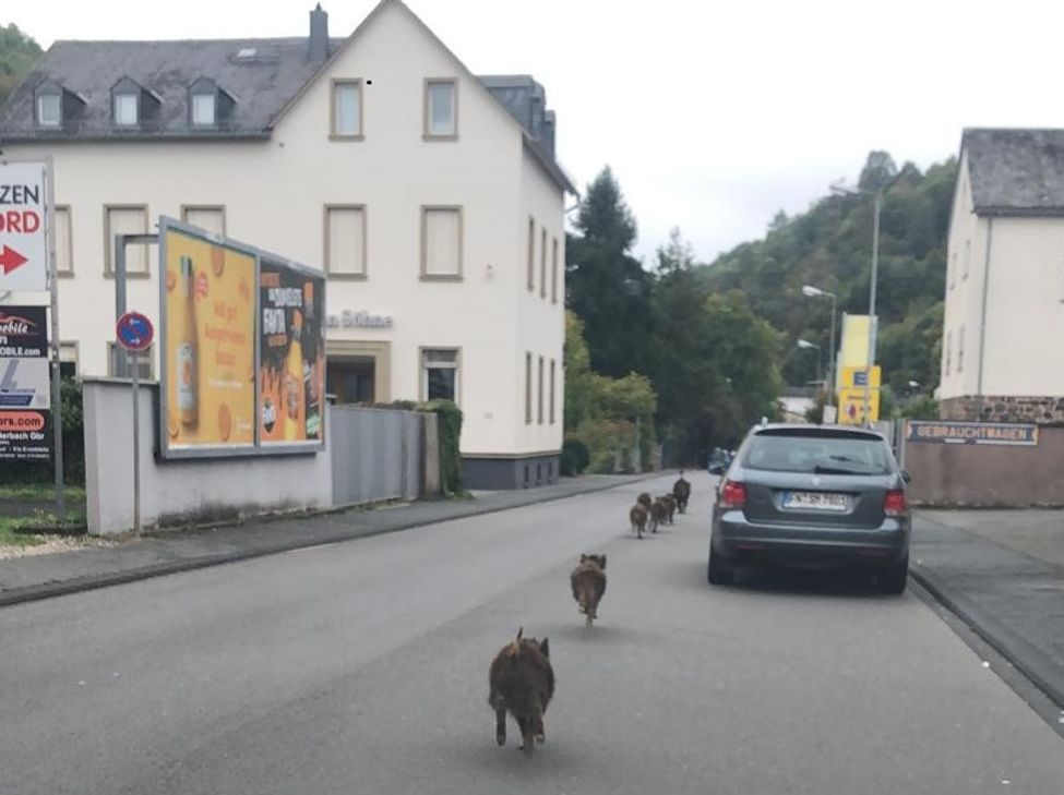 Wildschweinstadt Idar-Oberstein: Nachts wühlen sie sich durch Gärten und Wälder, nun lassen sich sich am hellichten Tag in den Straßen der Stadt sehen - siehe VIDEO!