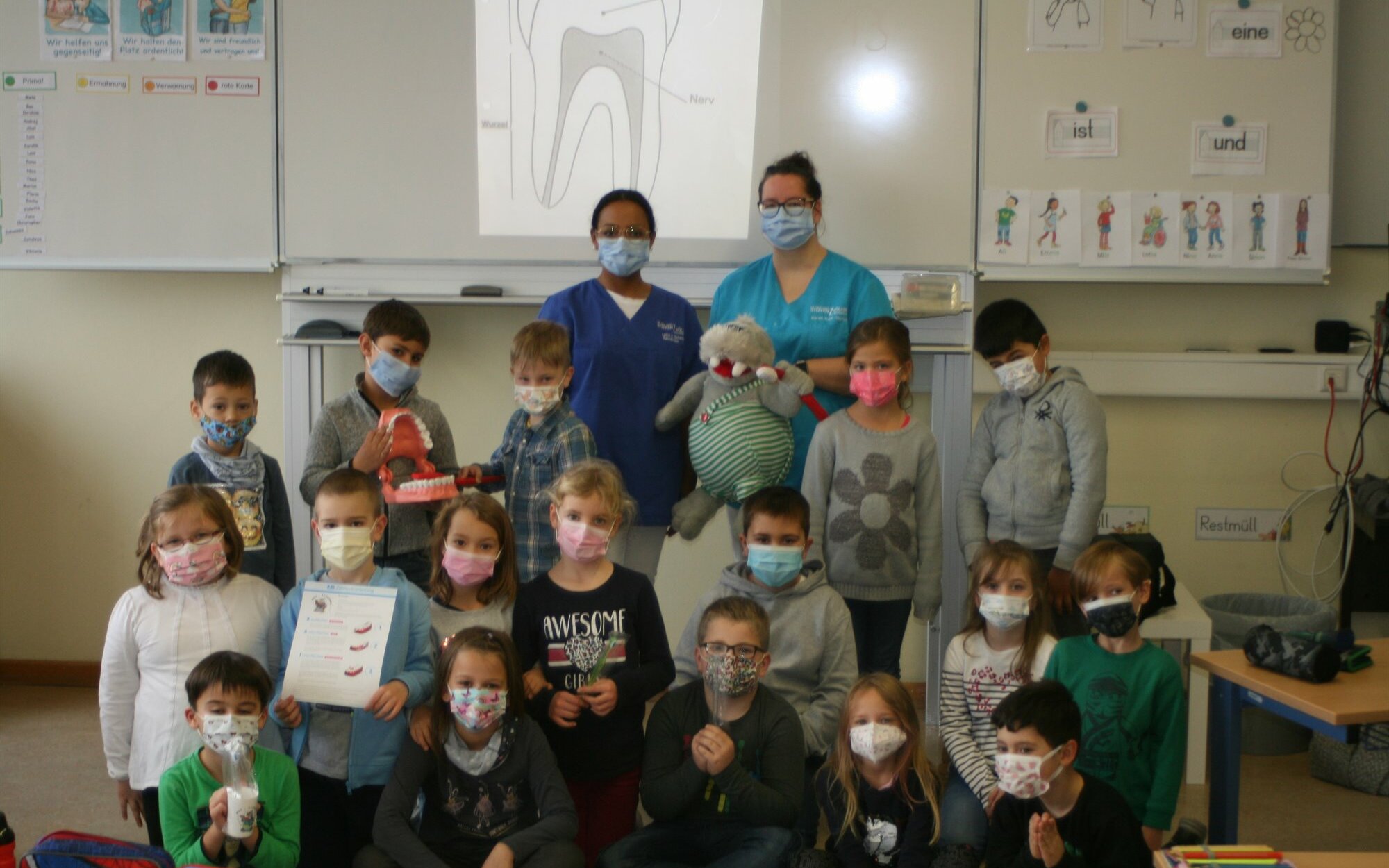 Rhaunen. Im Jahr 2020 musste diese Aktion leider pandemiebedingt ausfallen. 2021 war dies unter Einhaltung der geltenden Hygienemaßnahmen wieder möglich. Gerne kam die Zahnarztpraxis Dr. Steffen Völker dieser Prophylaxemaßnahme nach. Im November und Dezember 2021 brachte die Zahnärztin Lena Alessa Schmitt mit Unterstützung der Zahnmedizinischen Fachangestellten Sarah Kalf-Martin den Grundschulkindern der Grundschule Idarwald im Rahmen einer einstündigen Schulstunde in allen Jahrgängen die Zahngesundheit altersgerecht und spielerisch näher. Bei der Gruppenprophylaxe trainieren Kinder unter fachlicher Anleitung richtiges Zähneputzen und erhalten Tipps für eine zahngesunde Ernährung. In jedem Jahrgang wird ein besonderer Schwerpunkt gesetzt. Die SchülerInnen der Grundschule Idarwald in Rhaunen, hatten viel Spaß und erhielten nach der Schulstunde einen bunt bedruckten Umschlag mit einem Gruß von Max Schrubbel, dem Maskottchen der LAGZ Rheinland-Pfalz. Anfang des Jahres wurde das Prophylaxeprojekt „ Max Schrubbels Tricks für starke Kinderzähne“ in der Kindertagesstätte „Drei Freunde“ in Stipshausen durchgeführt. Es wurde den Kindern im Vorschulalter die altersgerechten Grundlagen zum Erhalt einer guten Mundgesundheit (Themen Ernährung, Sprache) vermittelt. Des Weiteren wurde mit dem Max Schrubbel Zahnputz-Zauberlied ein gemeinsames Zahn-Putztraining durchgeführt.